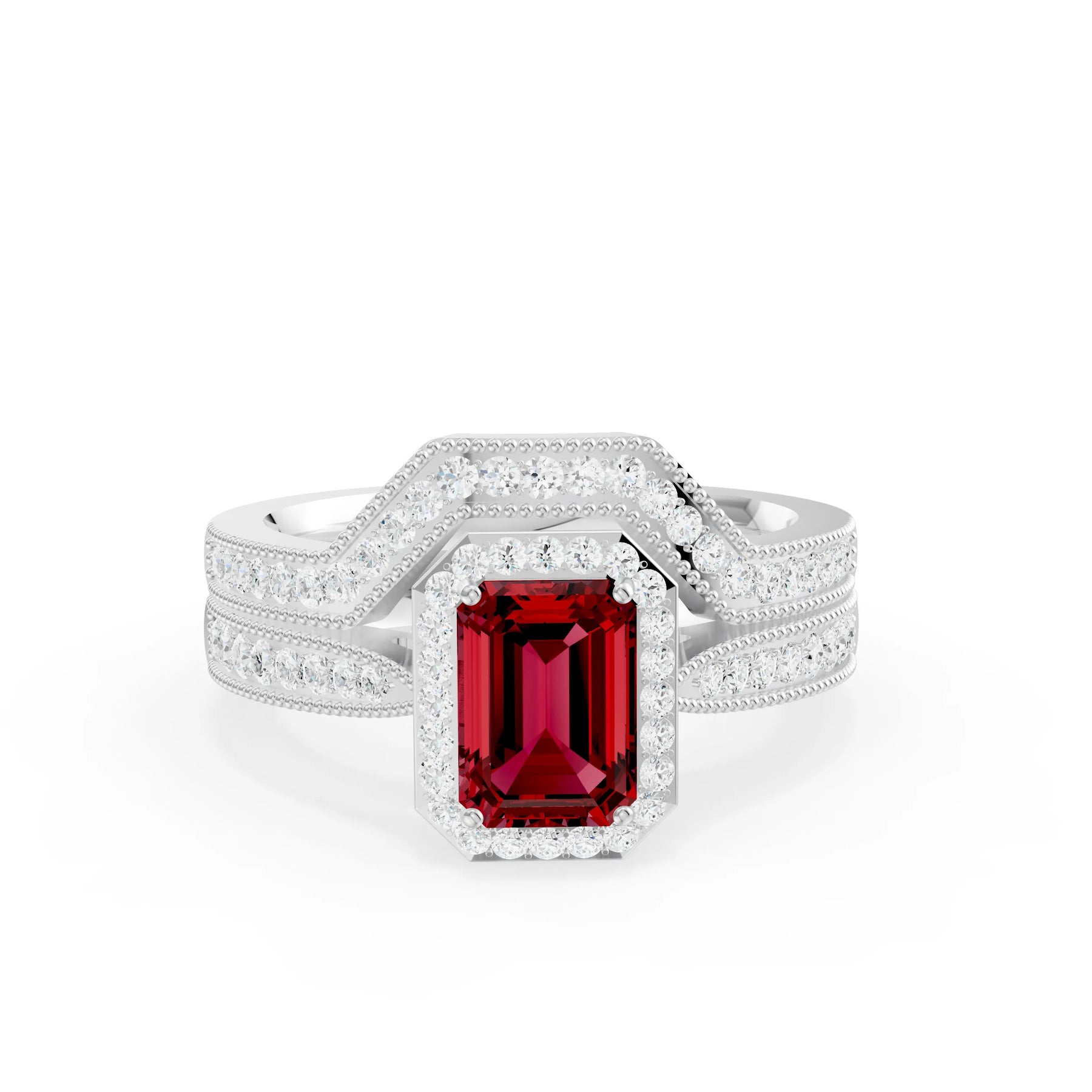 Discover a breathtaking 14K White Gold ring featuring a vibrant Created Ruby with an emerald cut, artfully set to showcase its brilliant red hue. Available in 10k, 14k, and 18k gold options, choose from White, Yellow, or Rose finishes to suit your style, all crafted with Peora's commitment to exceptional quality. Every detail in this ring reflects Peora's dedication to creating beautiful, responsibly sourced jewelry that resonates emotionally. With a total carat weight of 1.571 and VS1 clarity, this stunning ruby captures the light magnificently, providing an exquisite combination of luxury and lasting beauty. Each piece arrives elegantly packaged in a luxurious gift box, perfect for celebrating life's special moments.