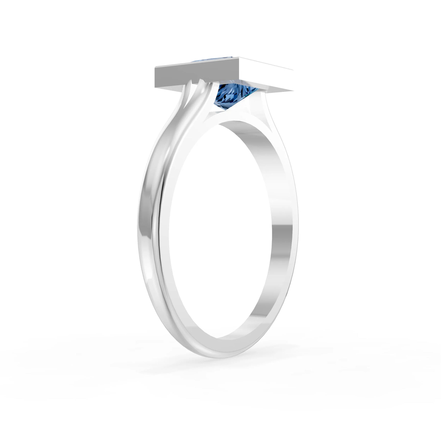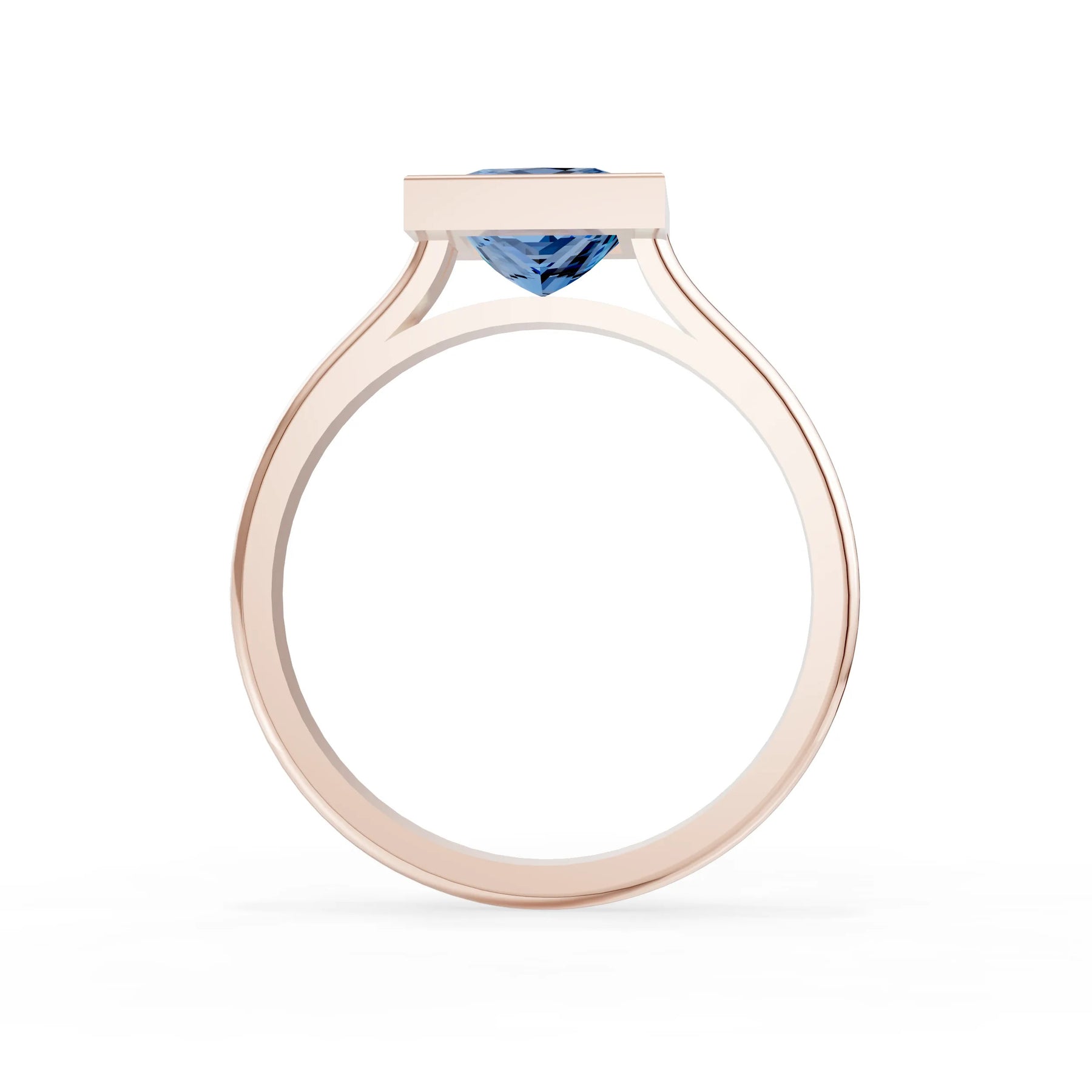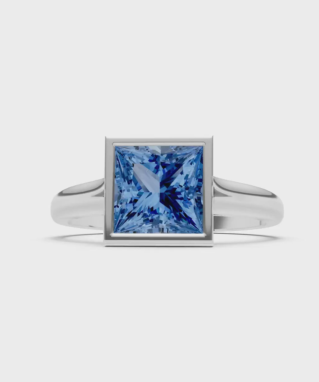 London Blue Topaz Princess Shape Bezel Solitaire Ring