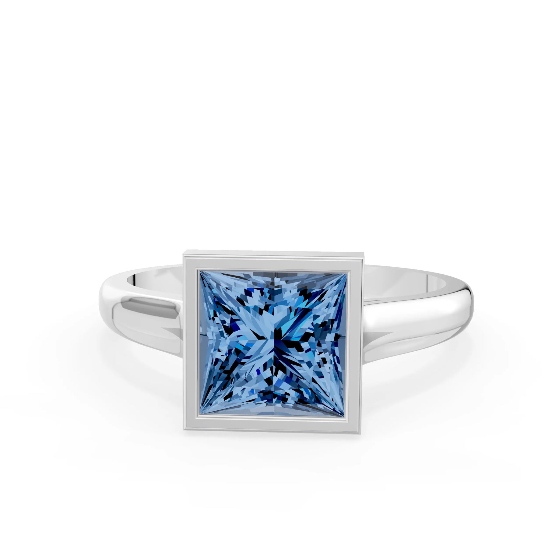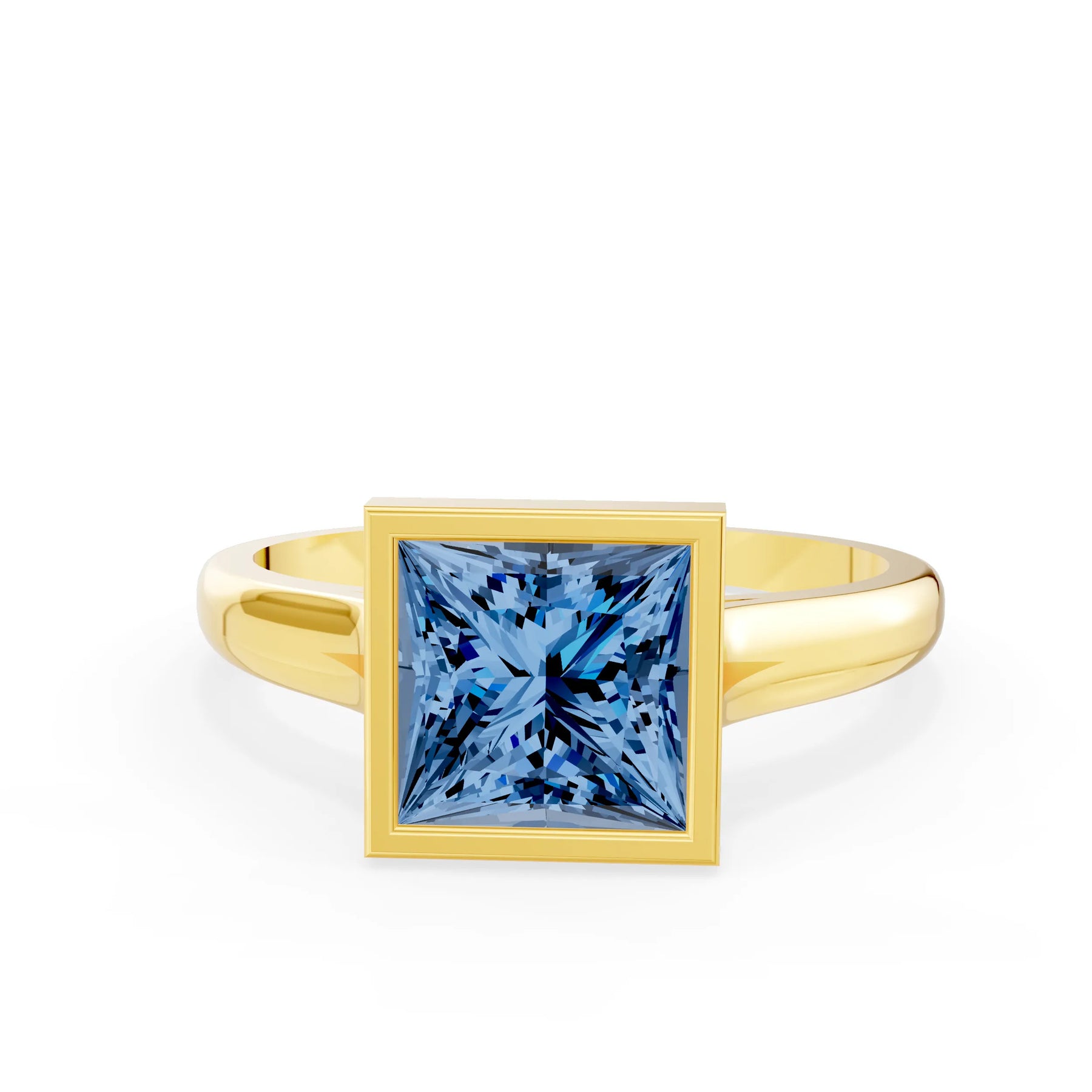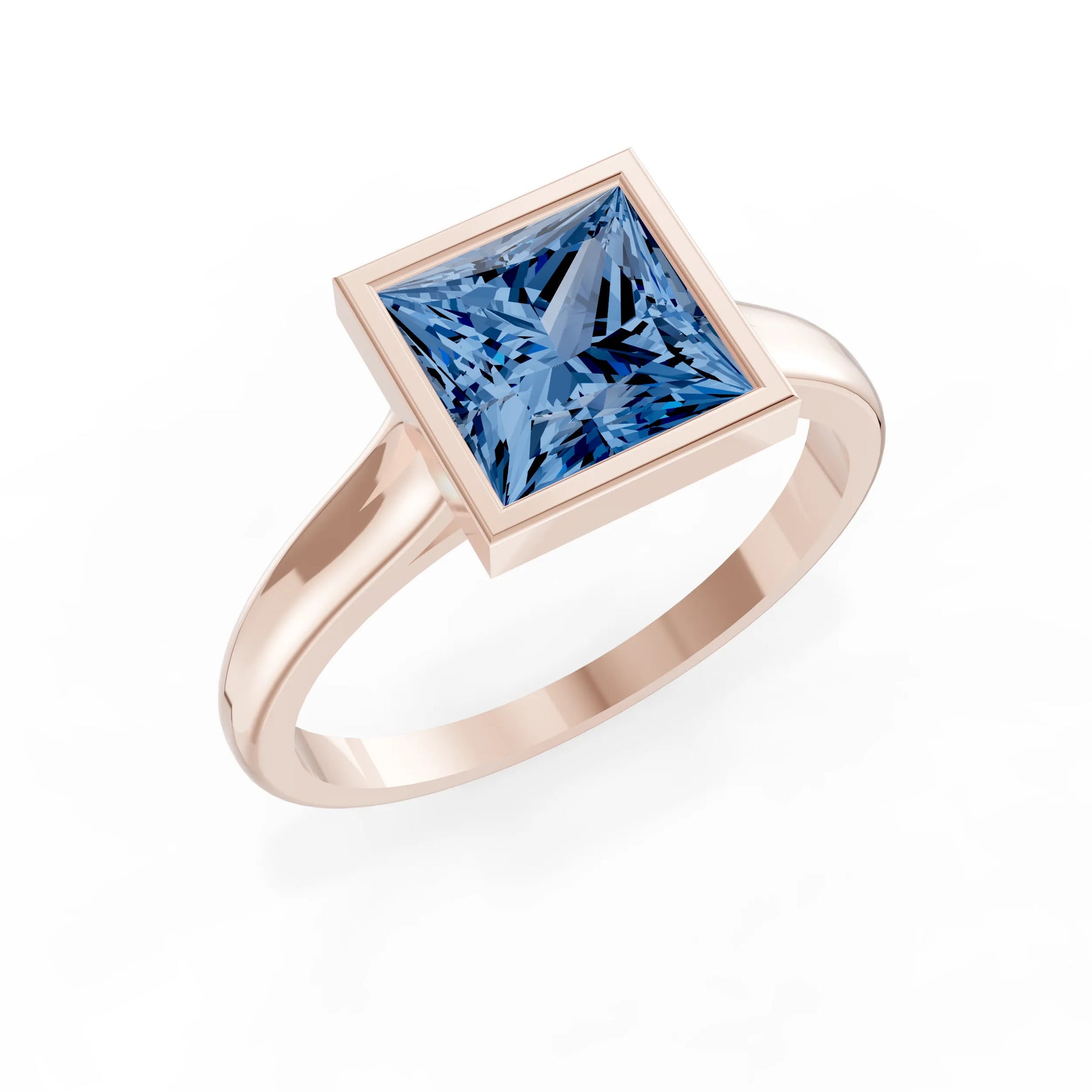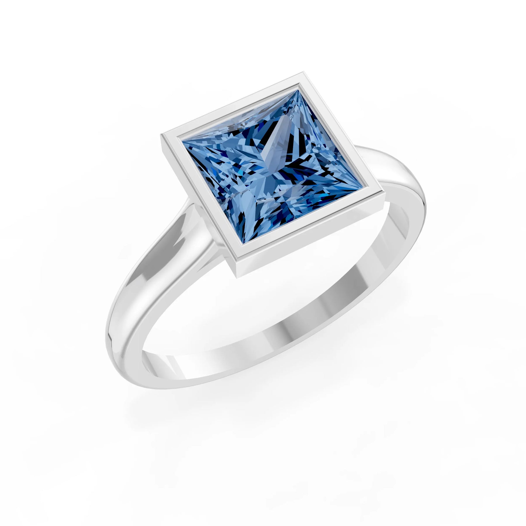 London Blue Topaz Princess Shape Bezel Solitaire Ring