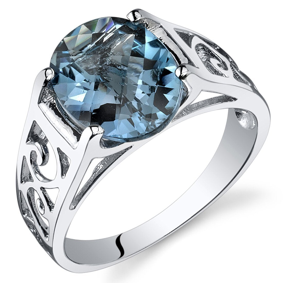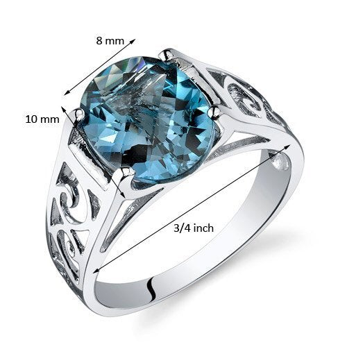 London Blue Topaz Ring Sterling Silver Oval Shape 2.75 Carats
