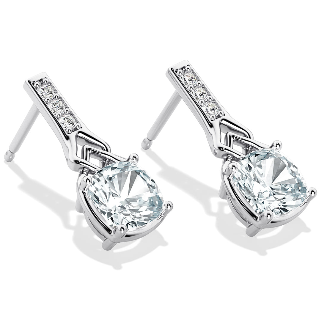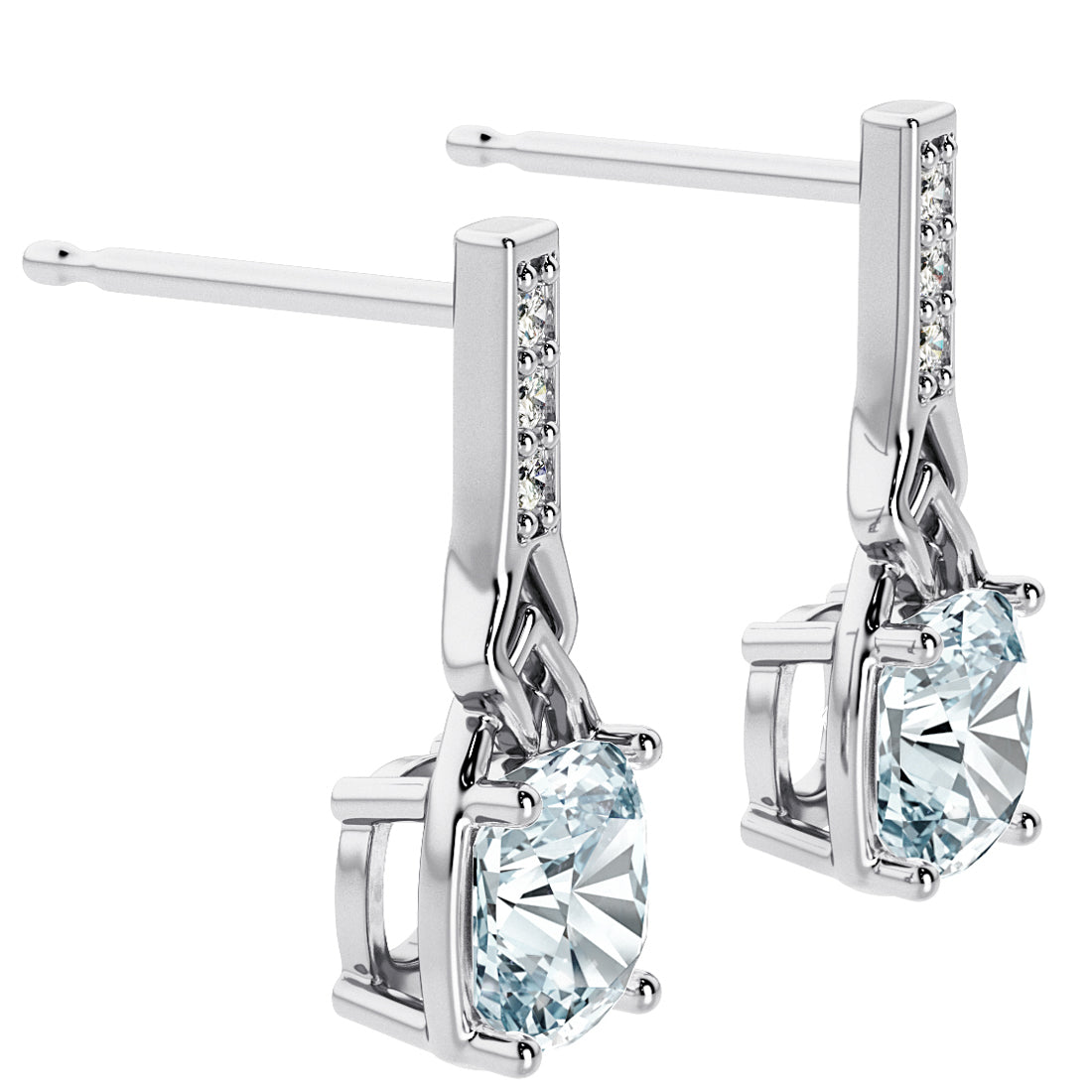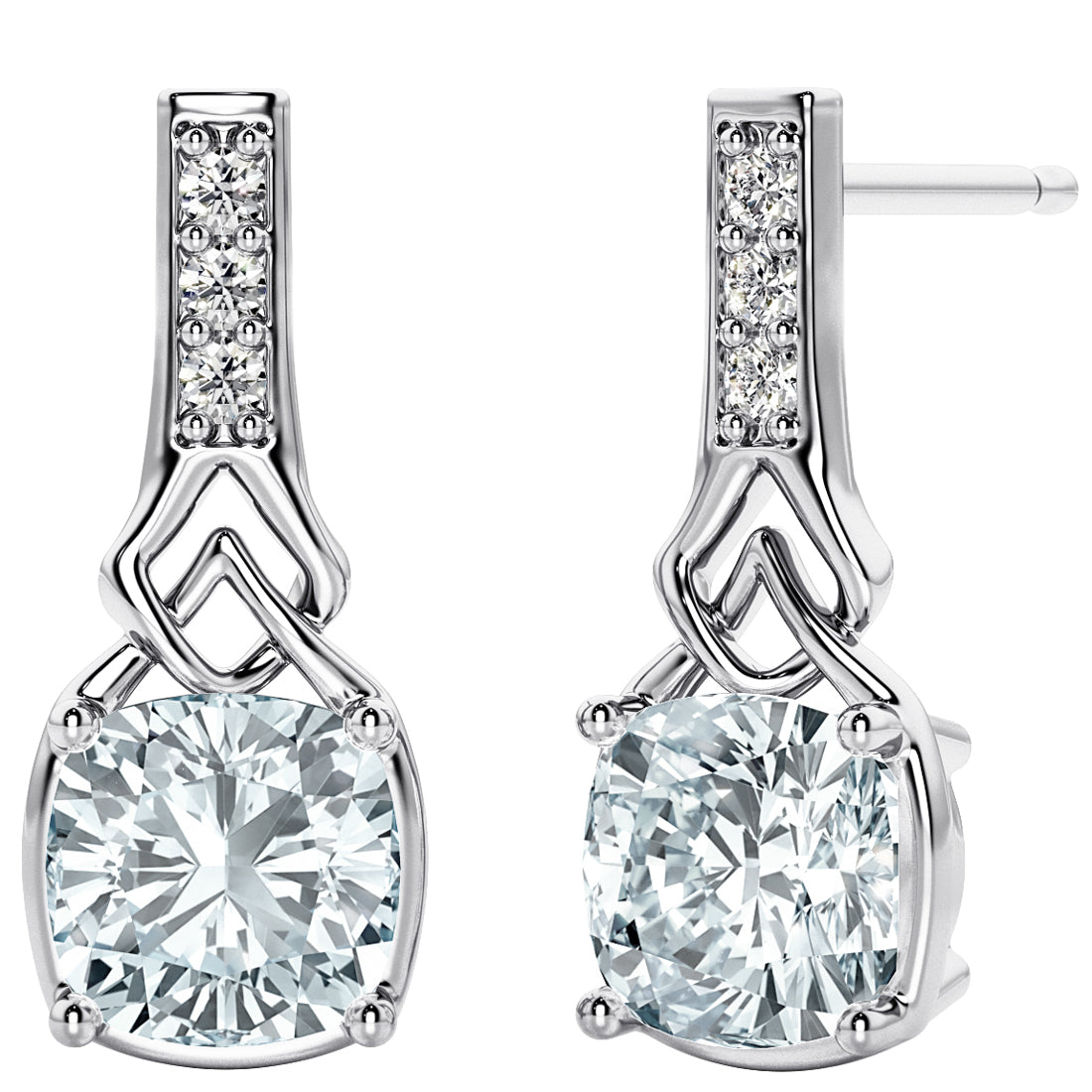 Cushion Cut Aquamarine and Diamond Cathedral Drop Earrings Sterling Silver 1.50 Carats