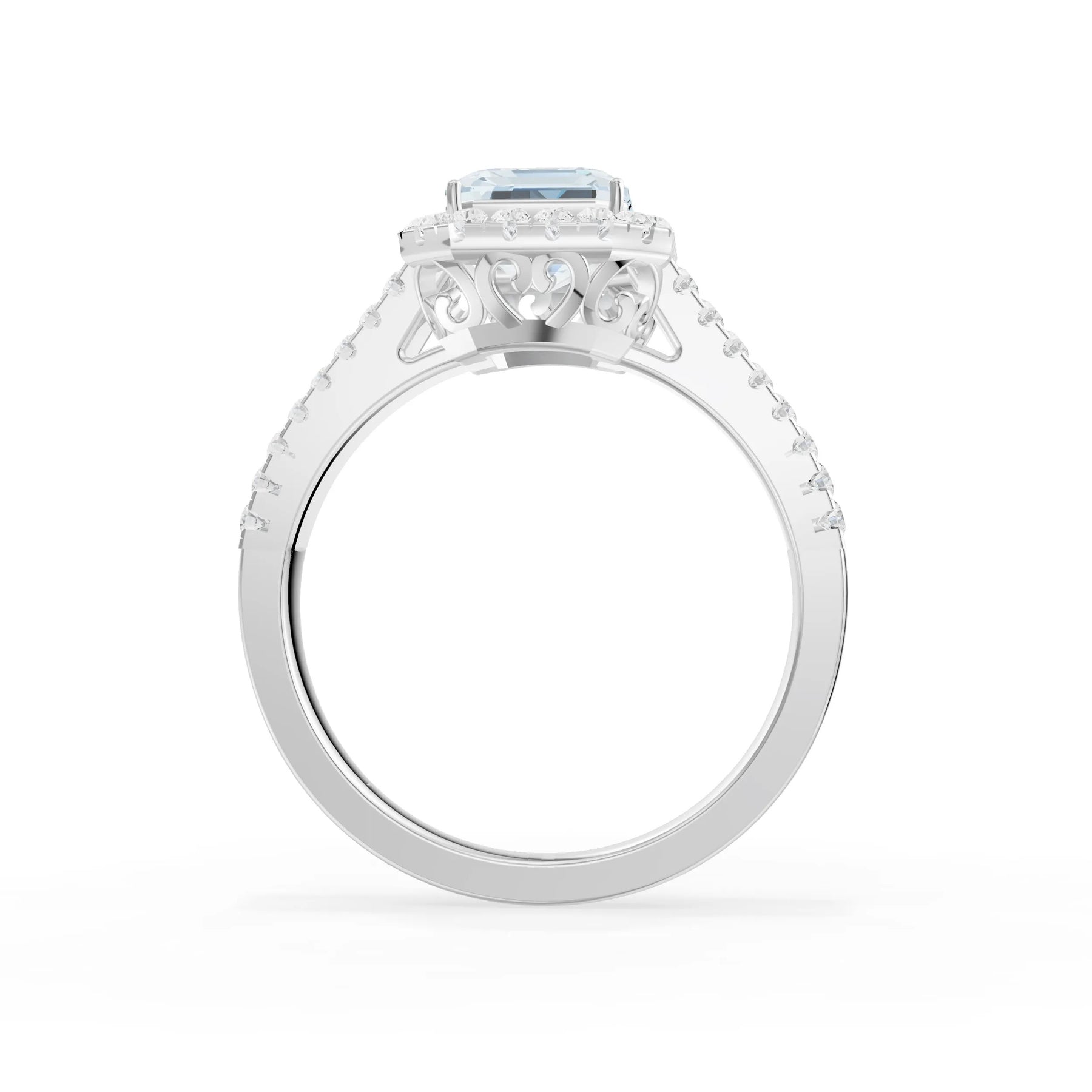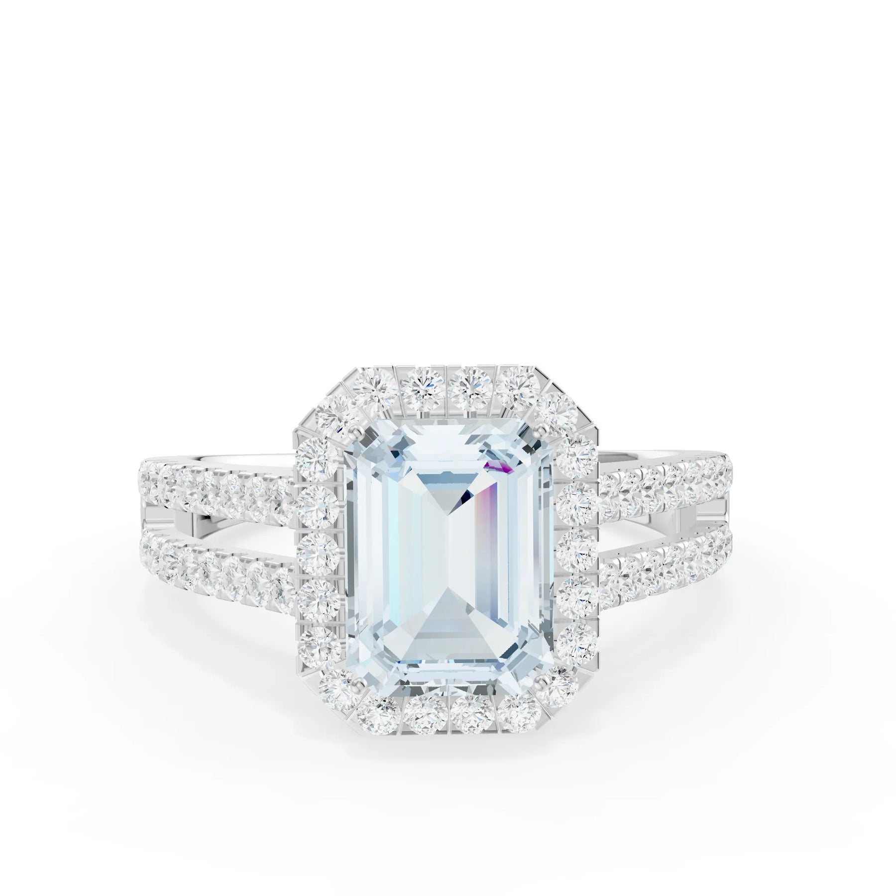 Aquamarine Halo Double Emerald Cut Band Pave