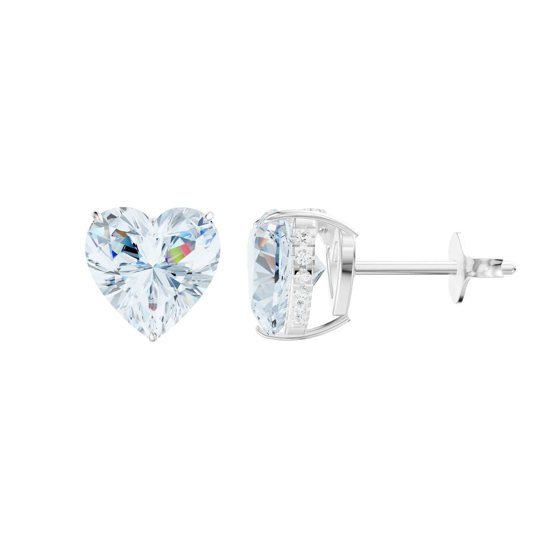 Aquamarine Hidden Halo Earrings - Heart - 8mm