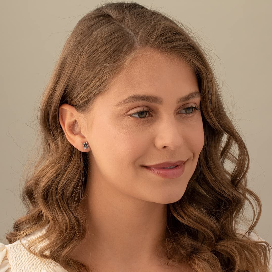 These standout earrings feature emerald shape Peora natural aquamarine gemstones in 14K white gold.