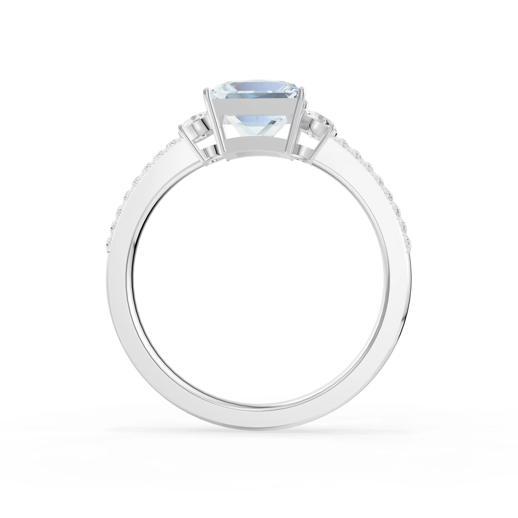 Aquamarine Three Stone Princess Cut Double Pave Band