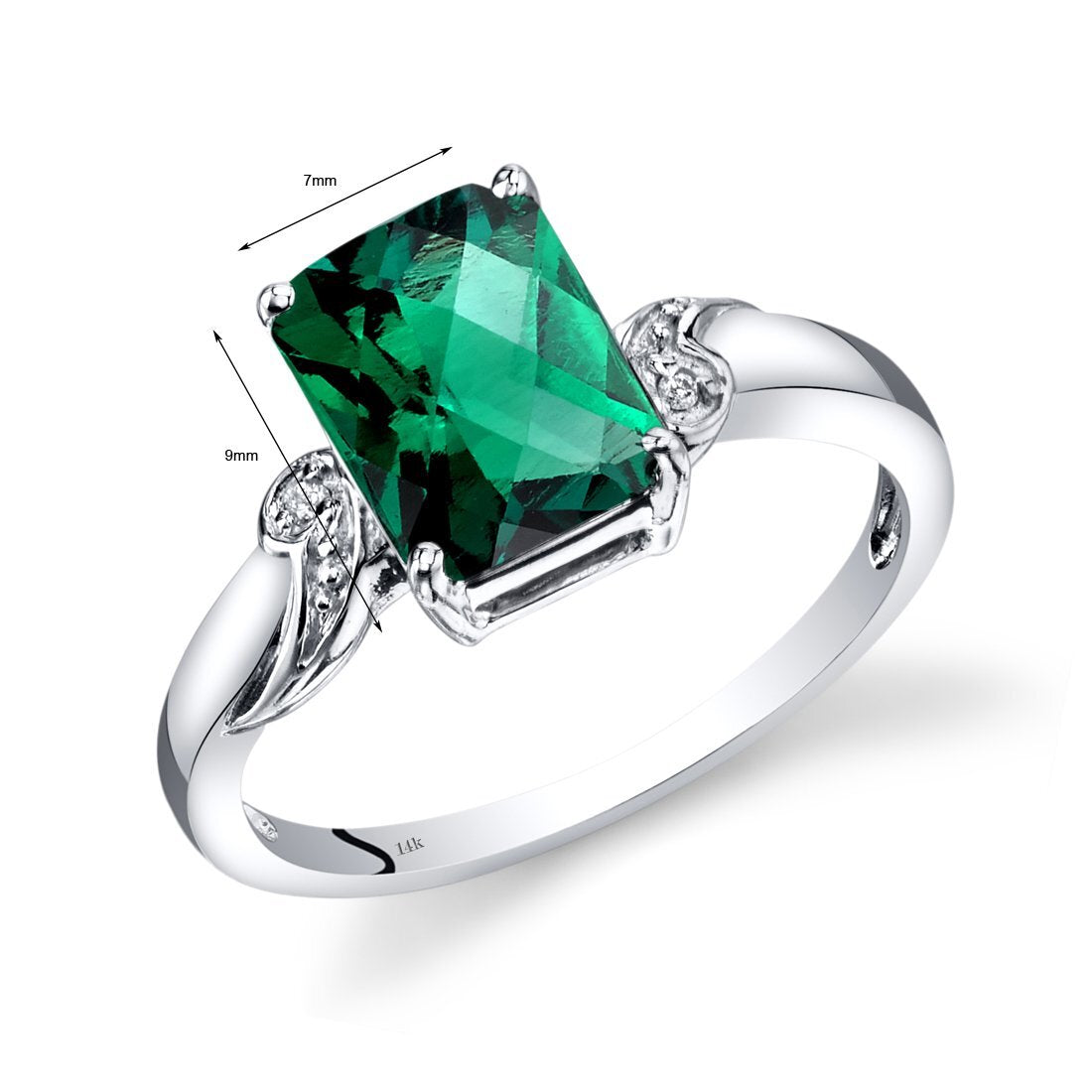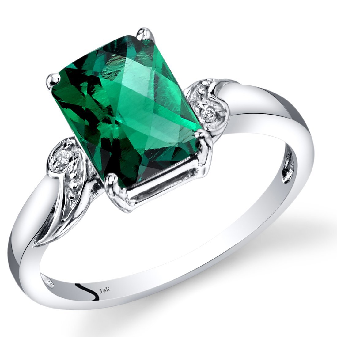 14K White Gold Created Emerald Diamond Ring Radiant Checkerboard Cut 2 Carats Total, Size 7