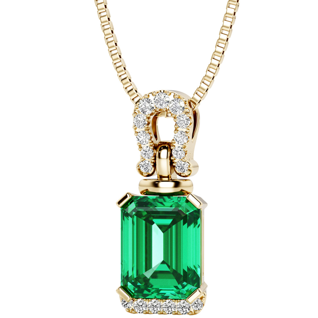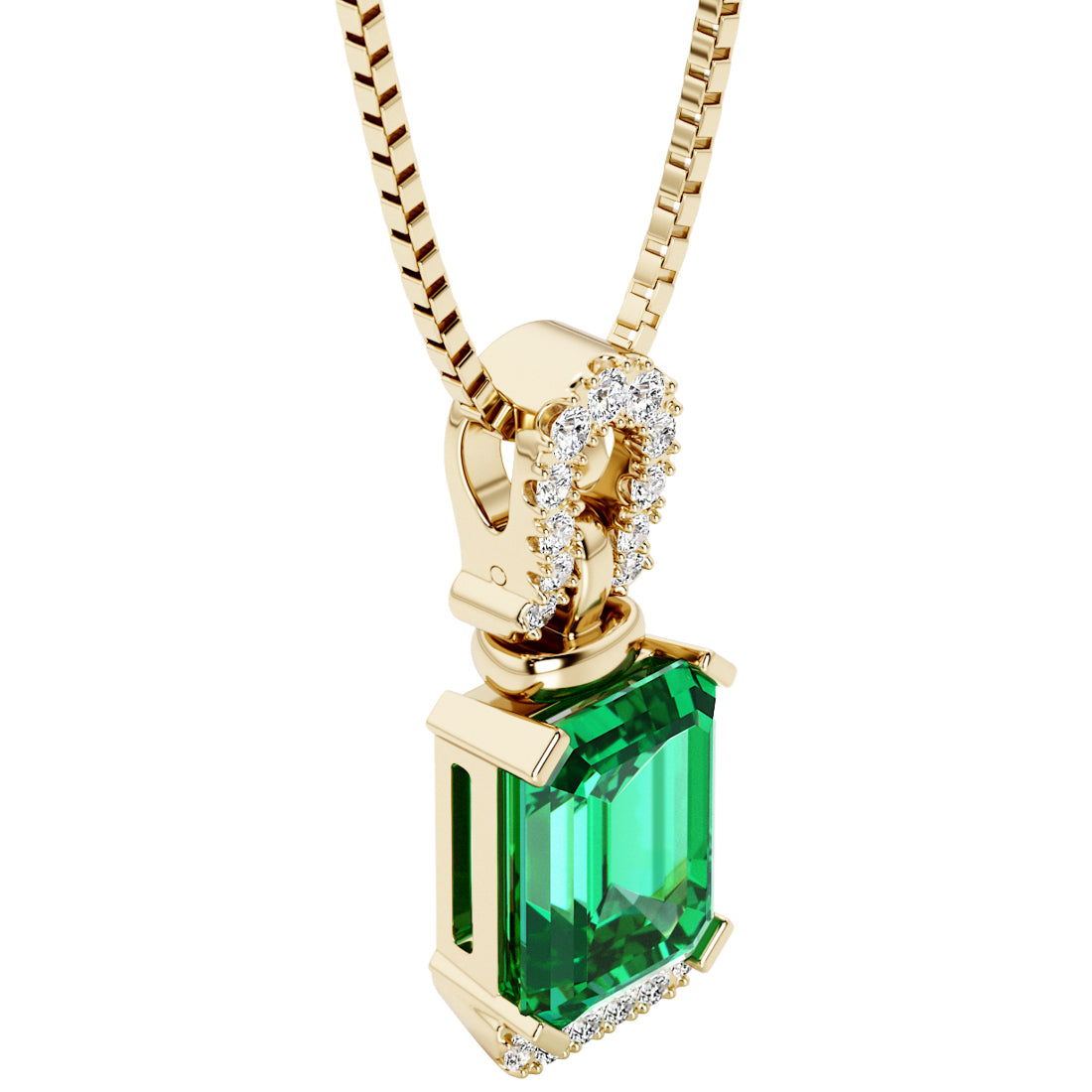 Video of Peora 14K Yellow Gold Created Colombian Emerald and Lab Grown Diamond Pendant Emerald Cut P10236.  Includes a Peora gift box. Free shipping, 45-day returns, authenticity guaranteed.