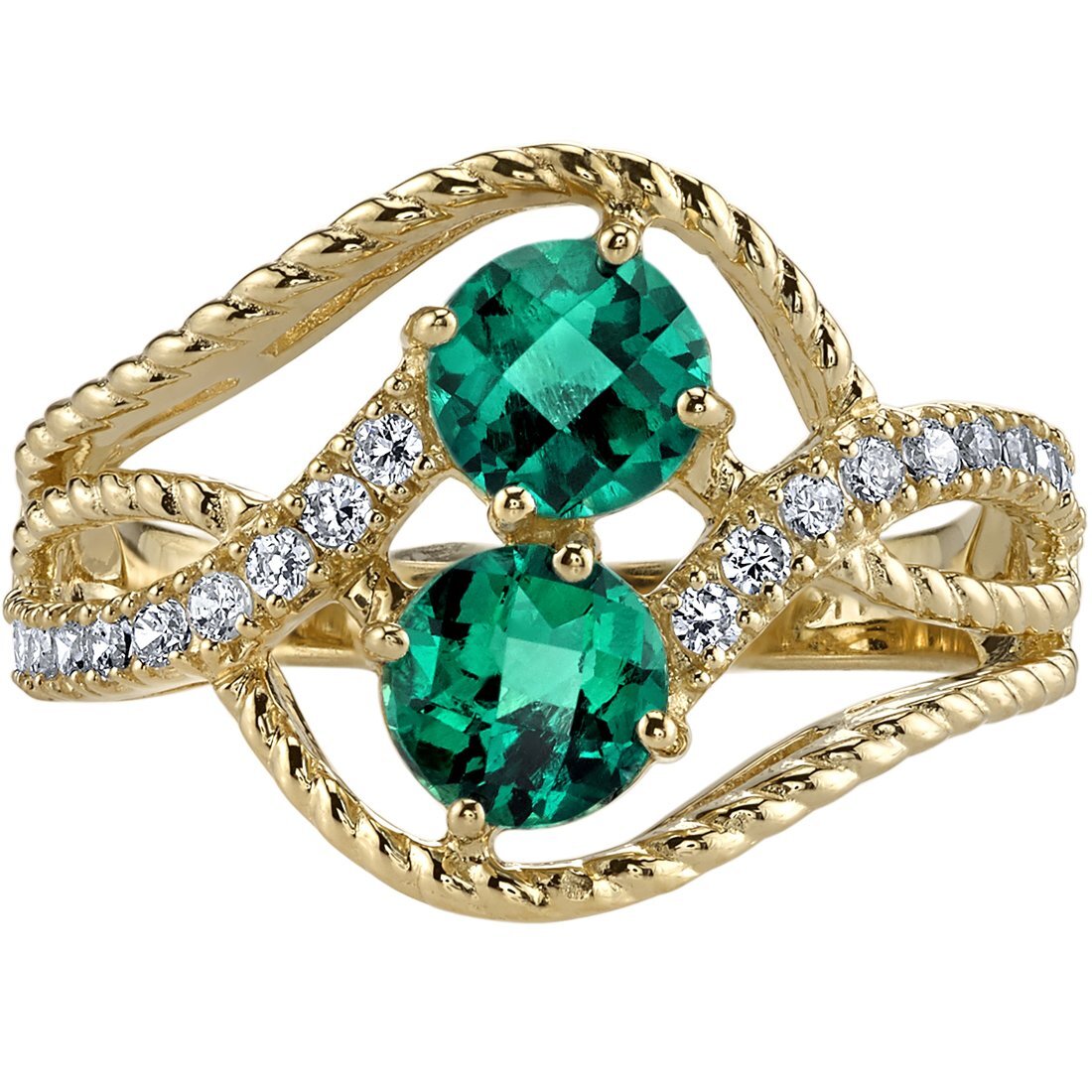 Two Stone Emerald Ring 14K Yellow Gold Round Shape 1 Carat