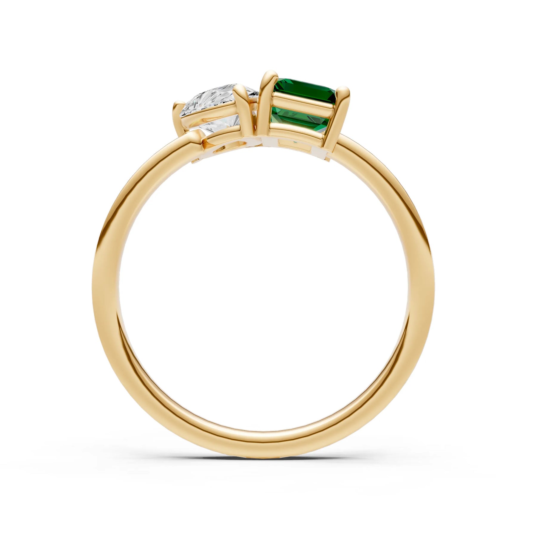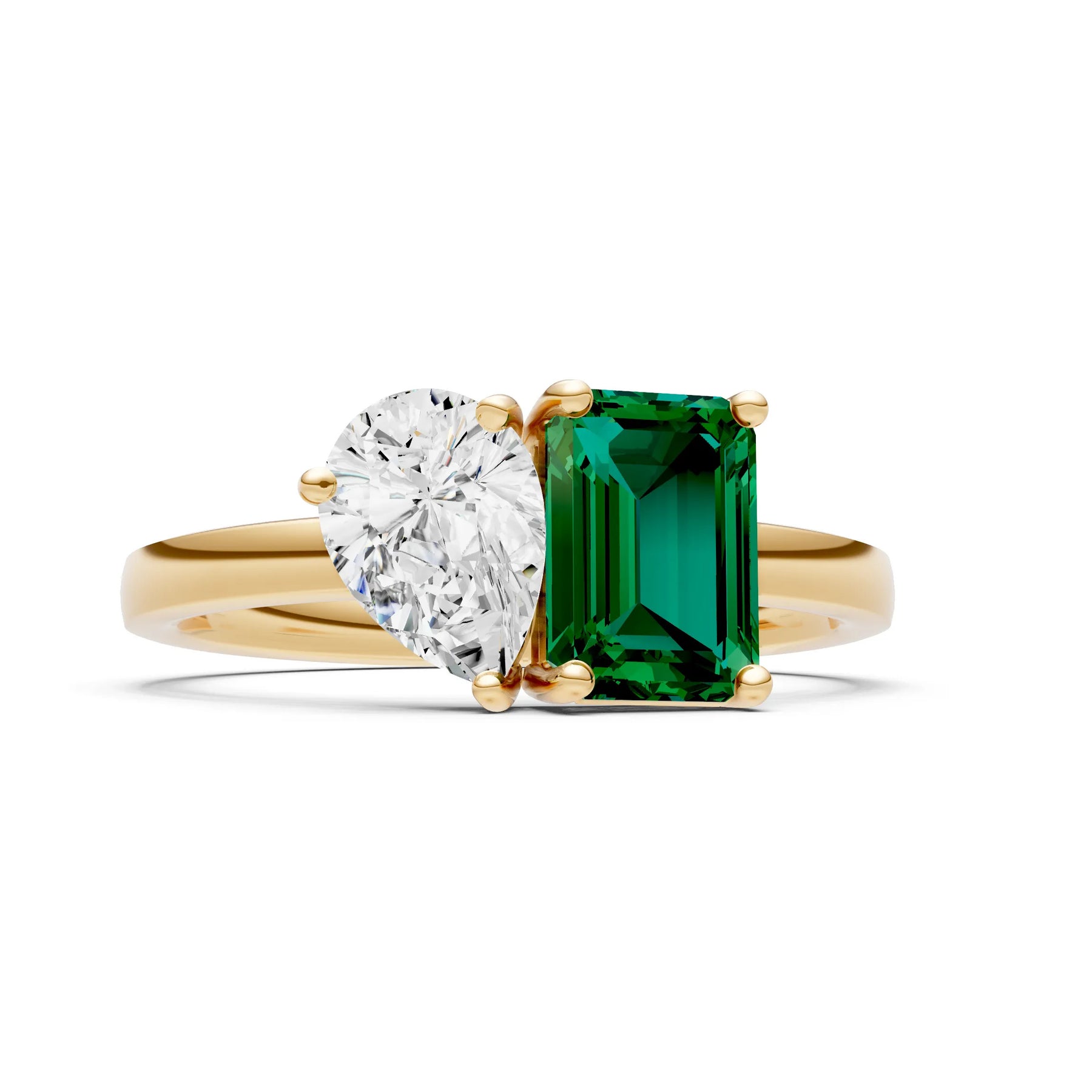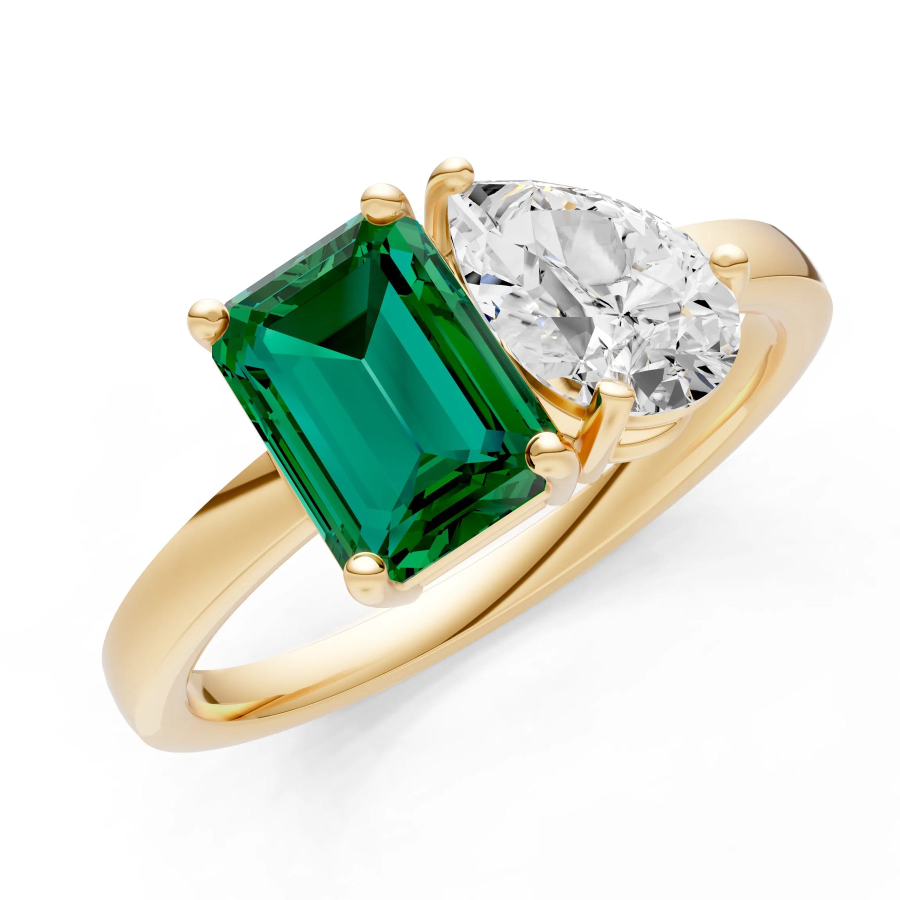 Emerald Emerald Cut Gemstone and Pear Cut Diamond Cocktail Ring