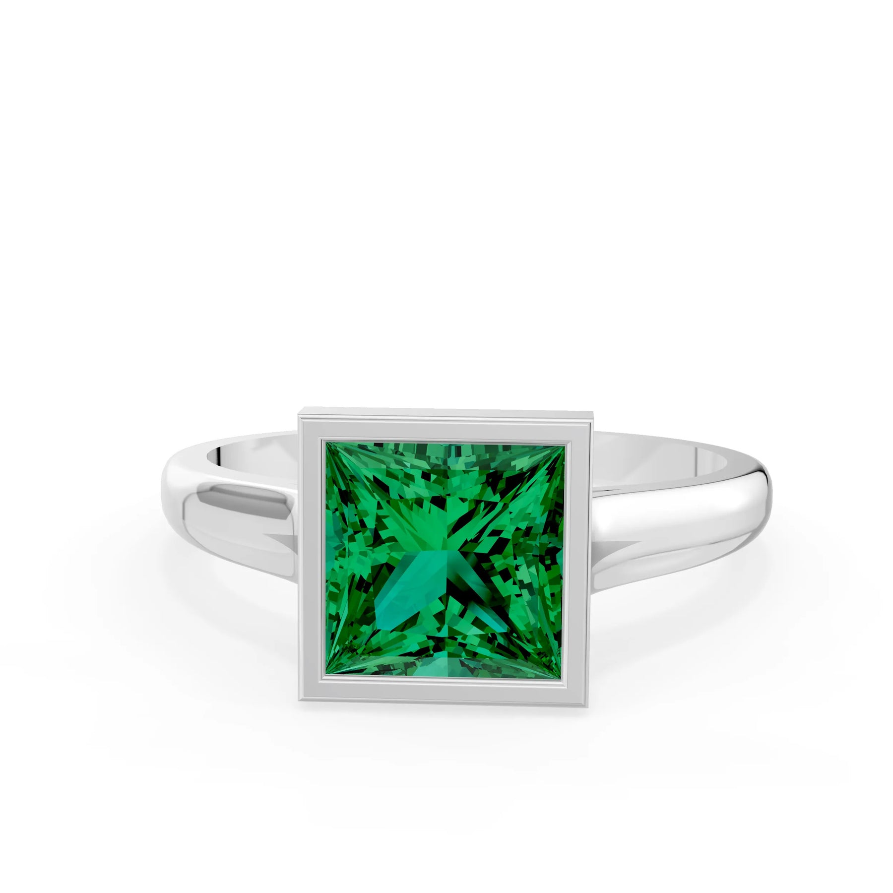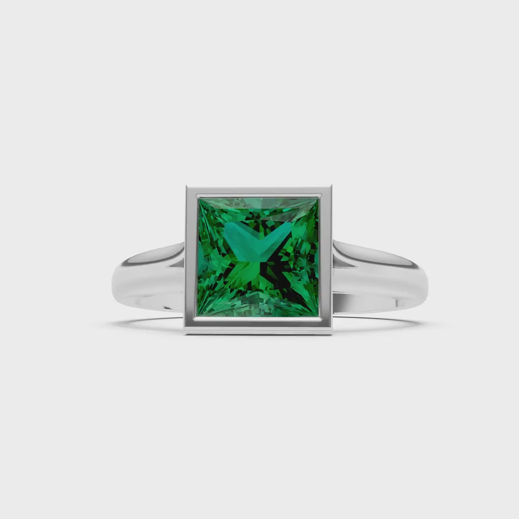 Emerald Princess Shape Bezel Solitaire Ring