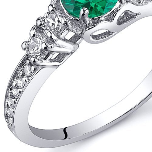 This versatile ring features a round shape Peora simulated Emerald gemstone in .925 sterling silver.