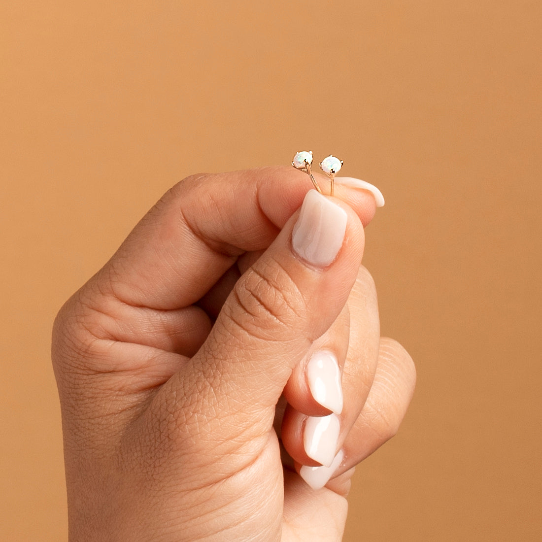Opal Petite Solitaire Stud Earrings 14K White Gold
