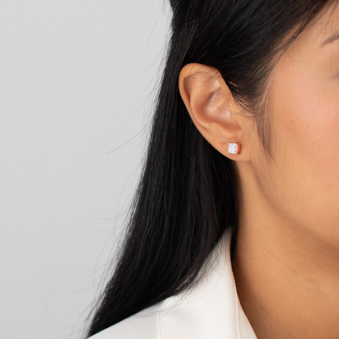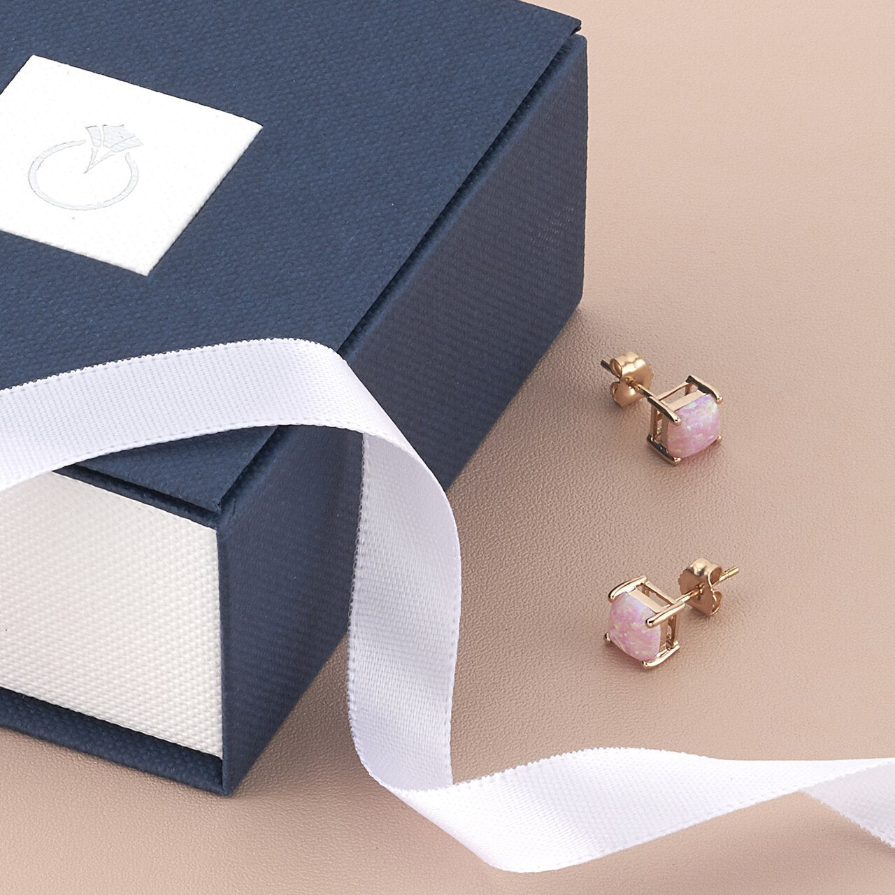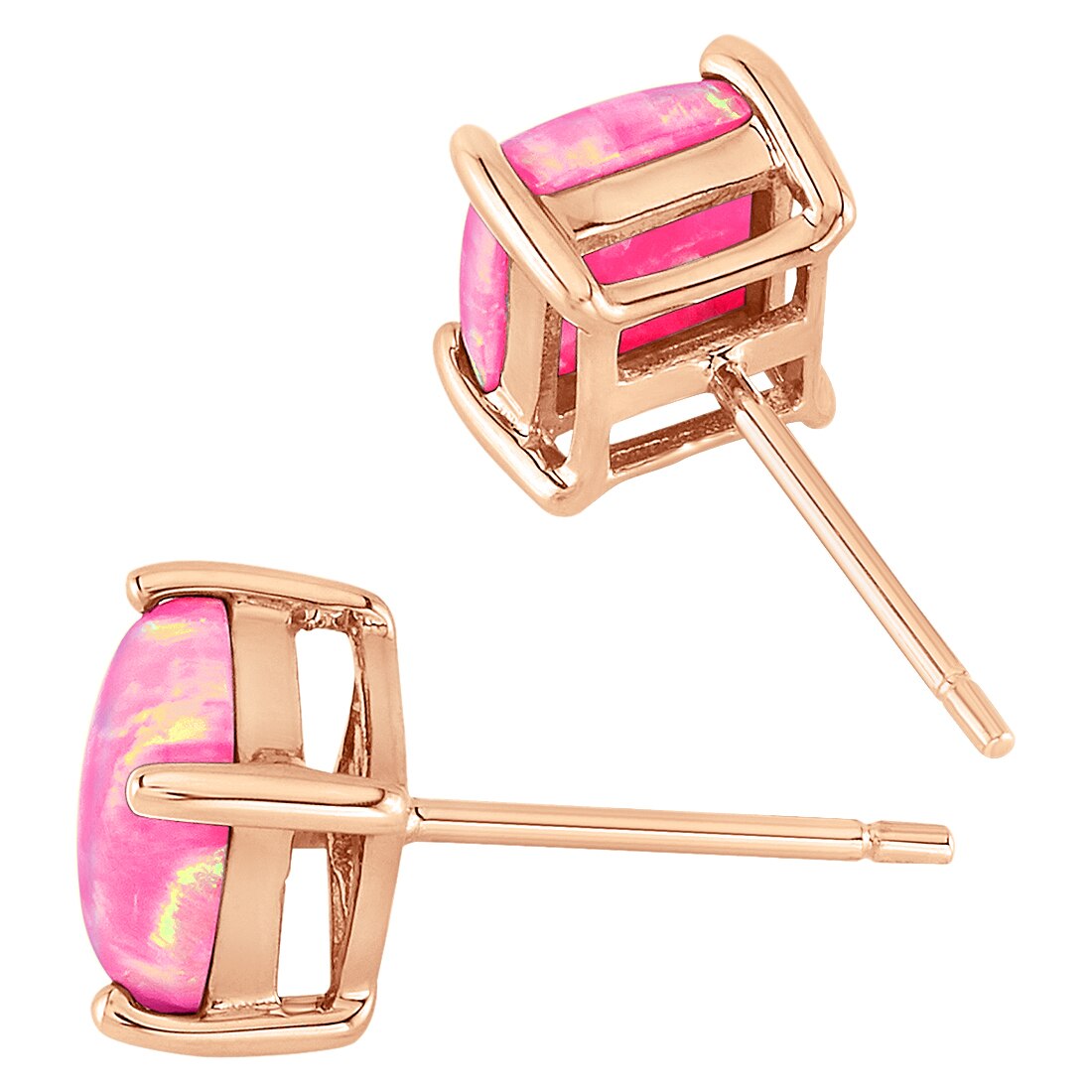 Created Pink Opal Stud Earrings In 14K Rose Gold Cushion Cut E19292 complimentary gift box