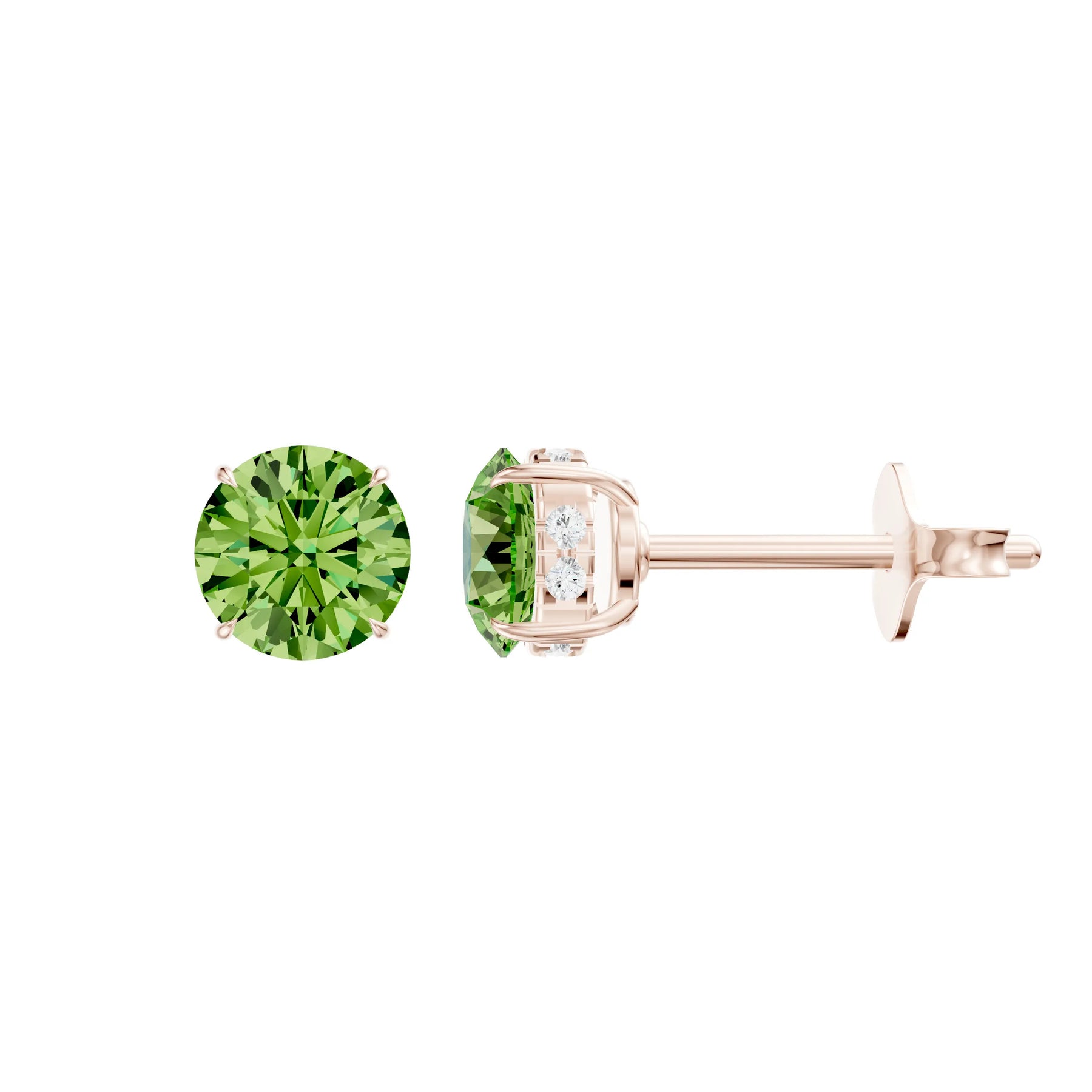 Peridot Hidden Halo Earrings - Round - 5mm
