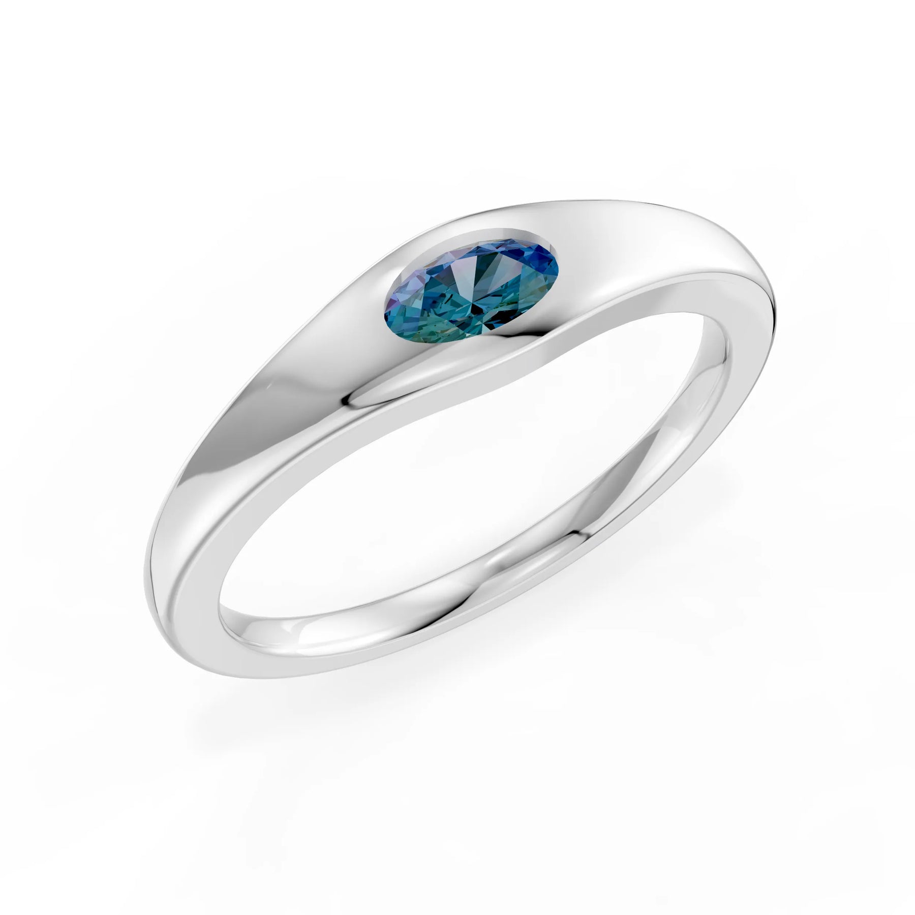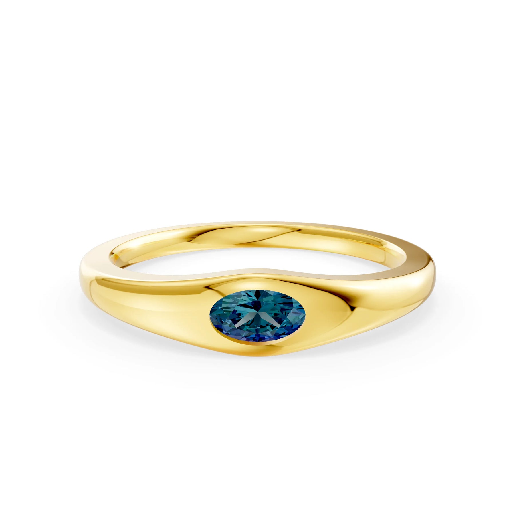 Alexandrite Flush-Set Oval Gemstone Mini Signet Ring