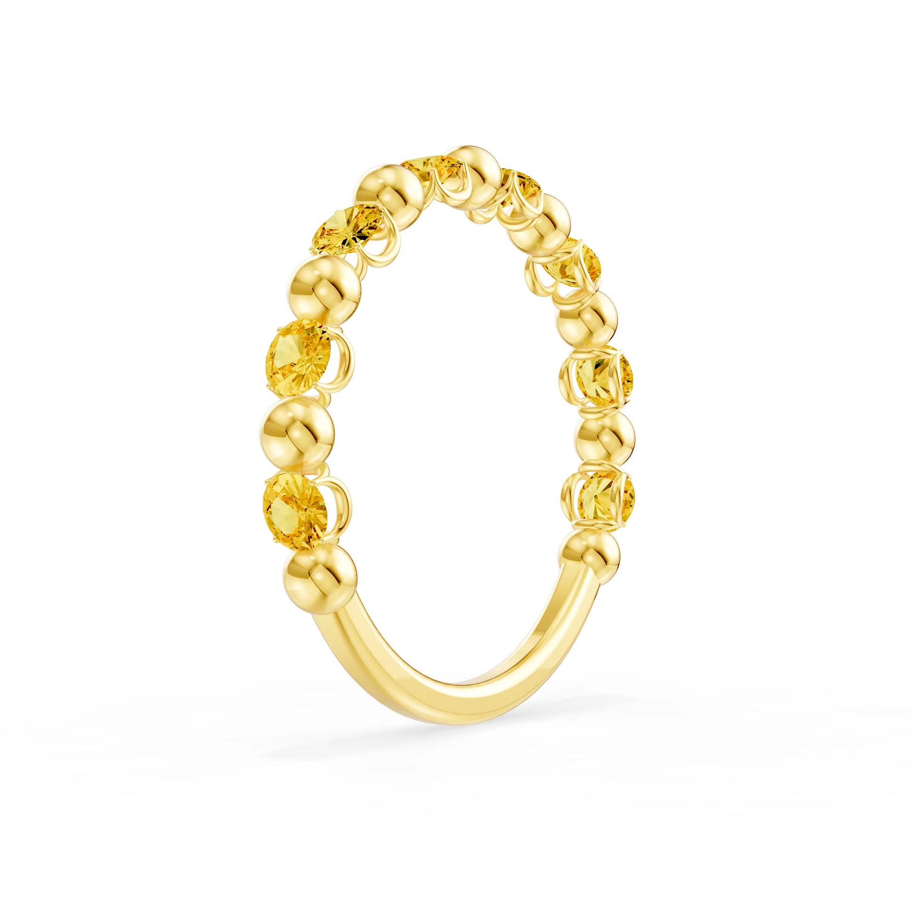 Citrine Beaded Diamond Stacking Ring