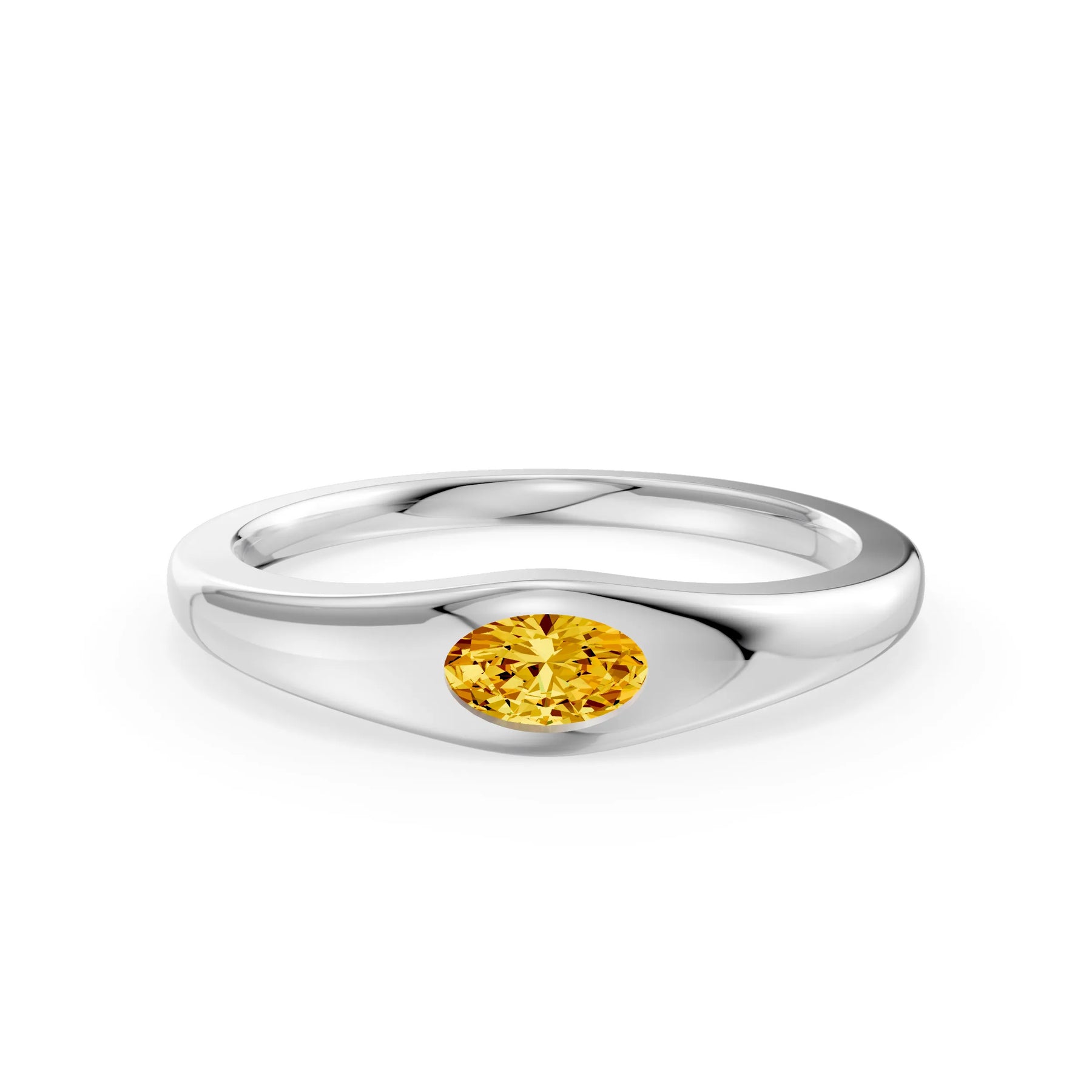 Citrine Flush-Set Oval Gemstone Mini Signet Ring