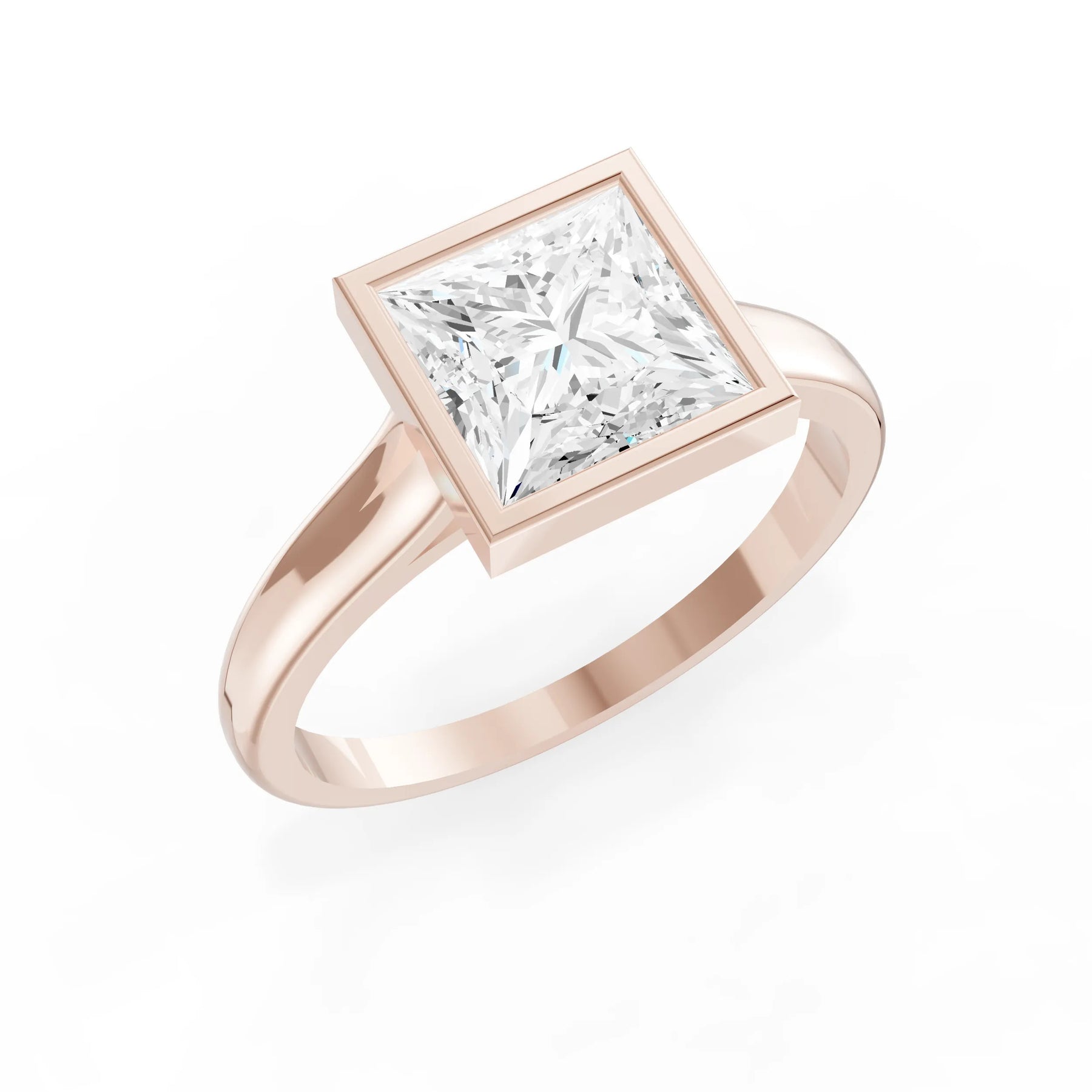 Diamond Princess Shape Bezel Solitaire Ring