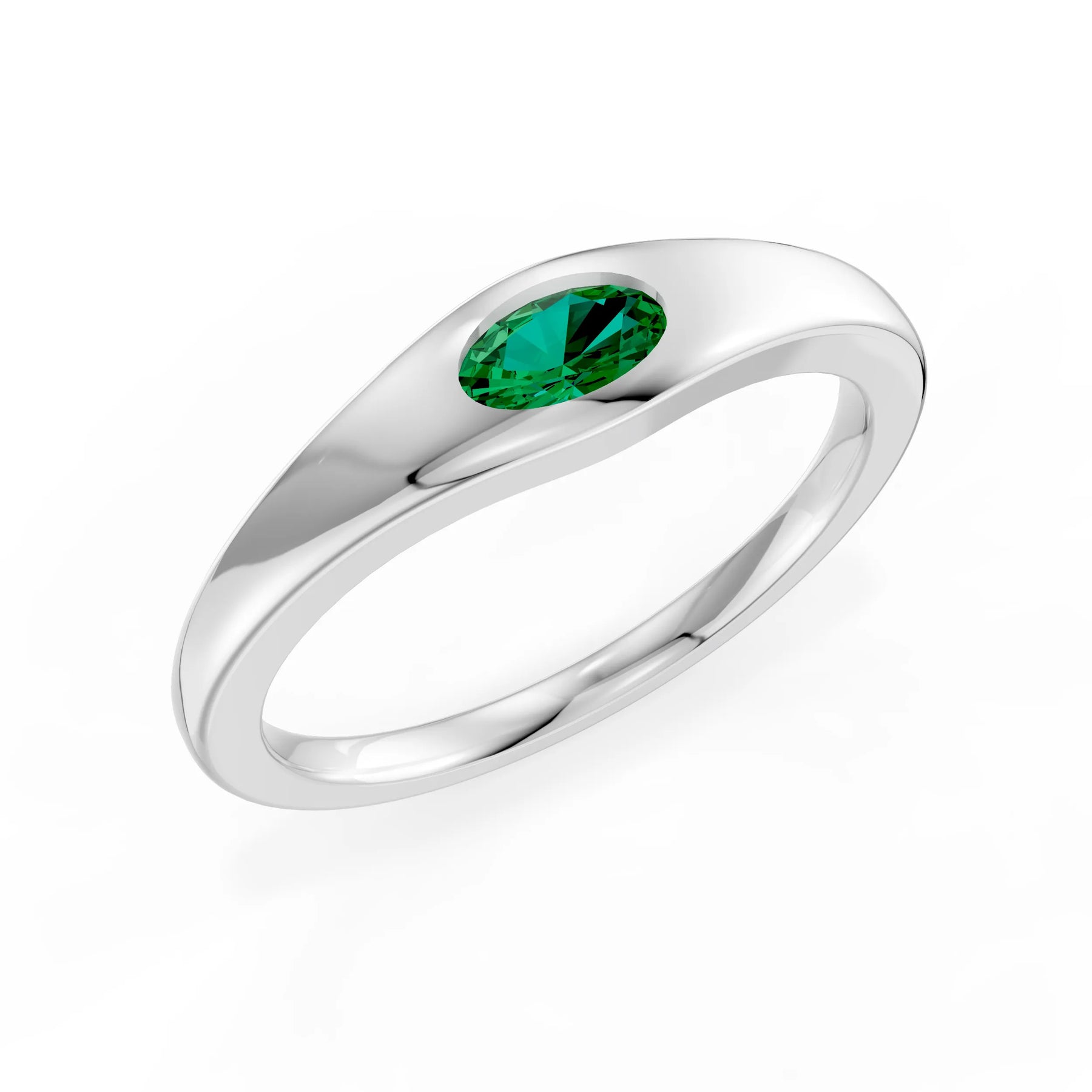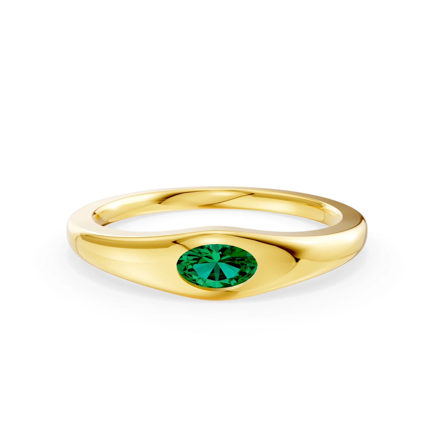 Emerald Flush-Set Oval Gemstone Mini Signet Ring