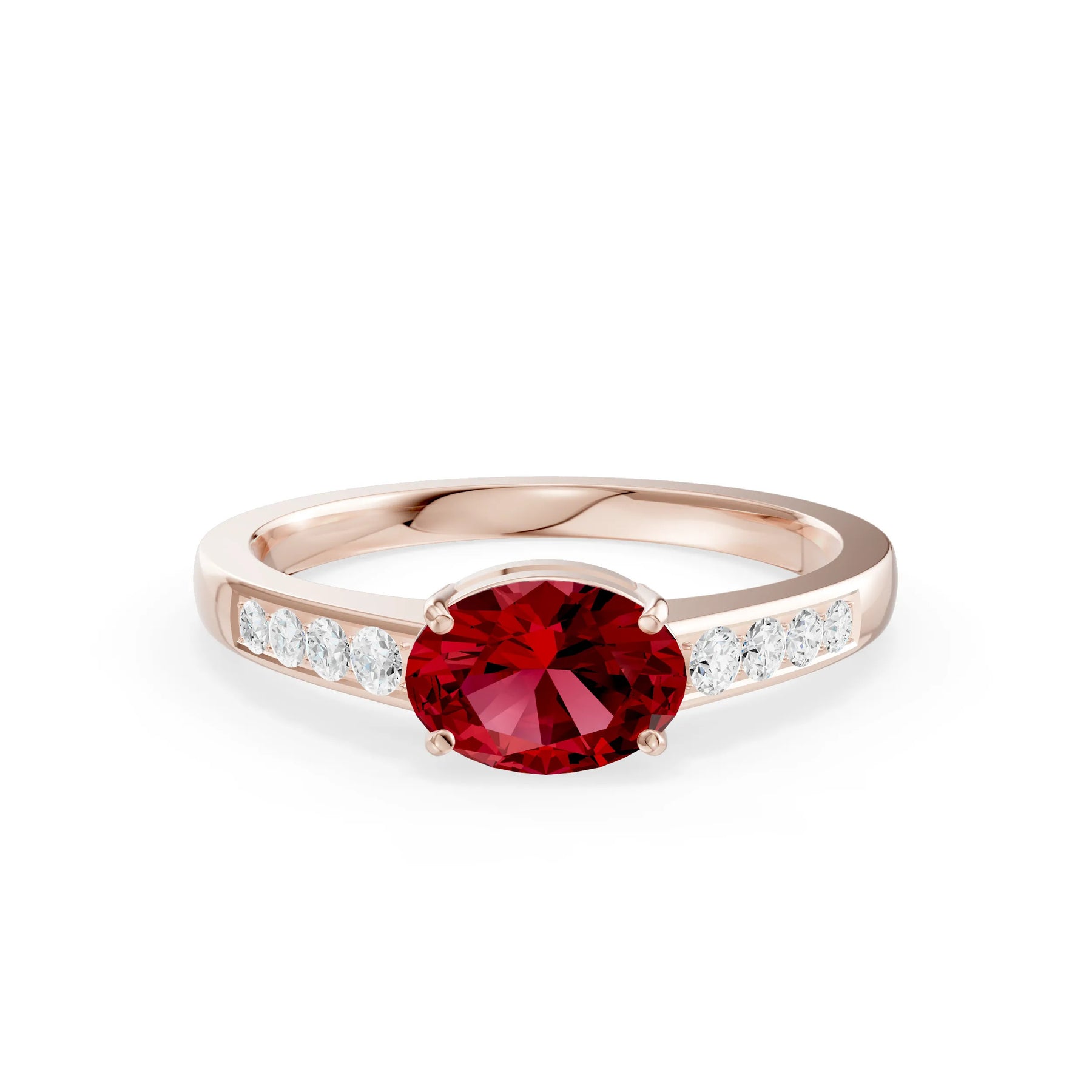 Ruby East West Oval Gemstone Ring with Accents