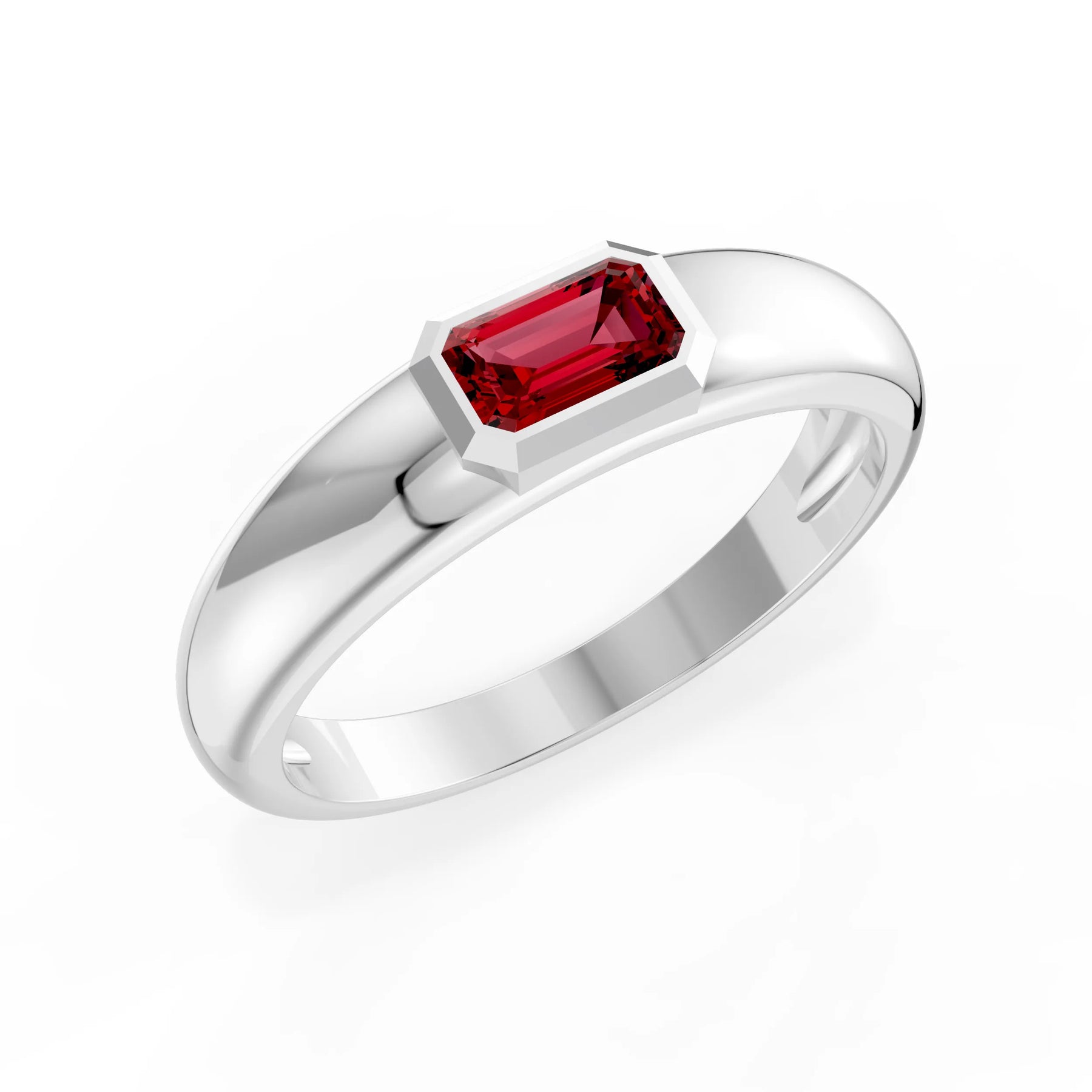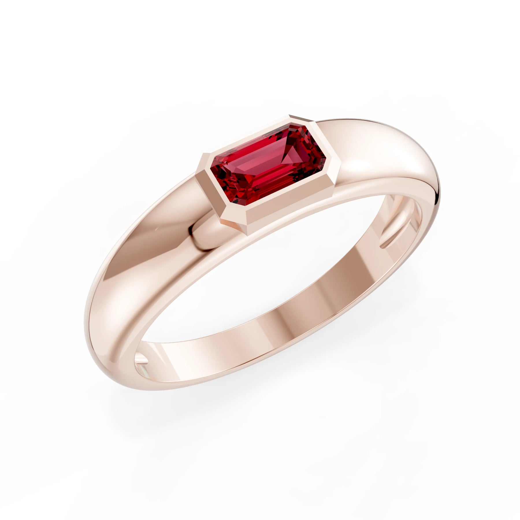 Introducing the striking Created Ruby, elegantly set in a choice of 10k, 14k, or 18k gold, available in White, Yellow, or Rose finishes. With its stunning emerald cut and a total carat weight of 0.55, Peora's commitment to quality craftsmanship shines through in every detail of this exquisite piece. Each Created Ruby exhibits a vibrant red hue and is thoughtfully designed to be a meaningful addition to your collection. Peora prides itself on responsible sourcing practices, ensuring that this luxurious jewelry piece resonates with beauty and purpose. This stunning piece arrives in a luxurious gift box, perfect for gifting or safekeeping.