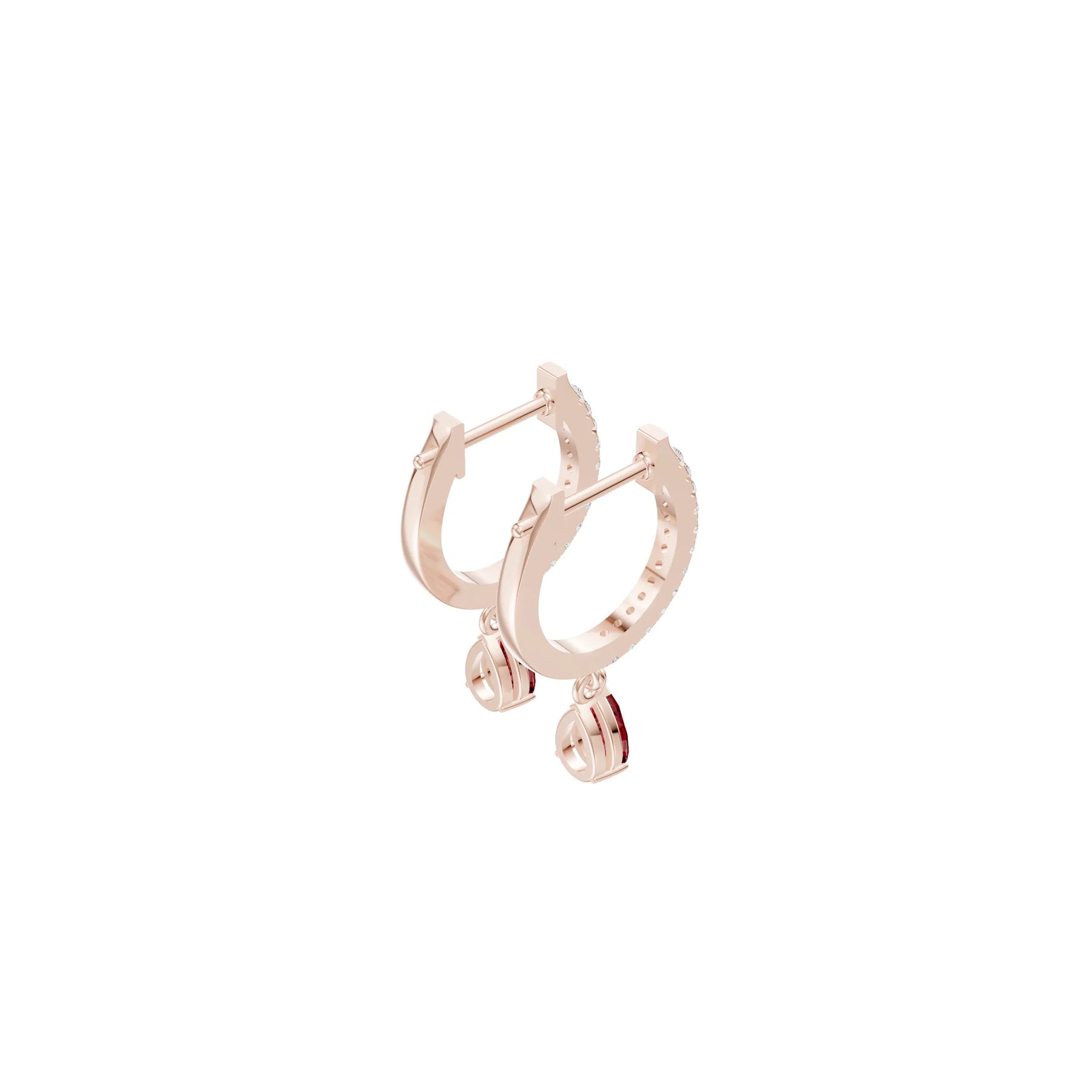Ruby Gemstone Pear Shape Hoop Drop Earrings with Accents - 6x4mm