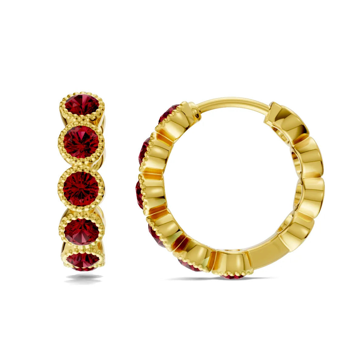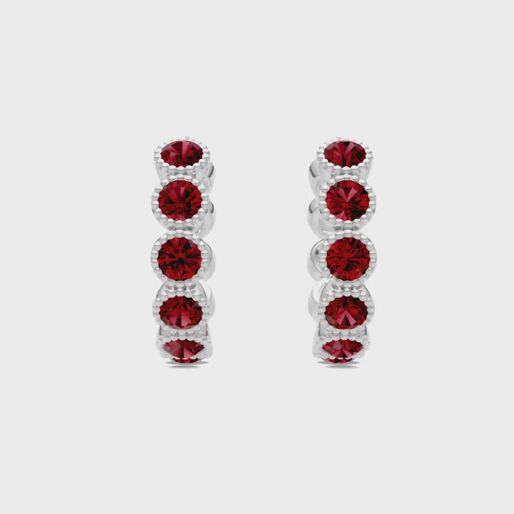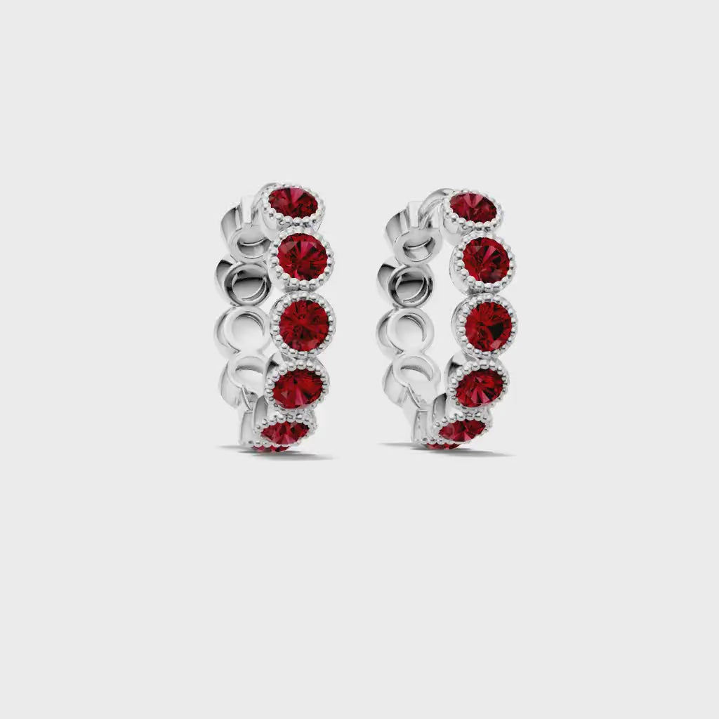 Ruby Round Bezel Huggies Earrings with Milgrain