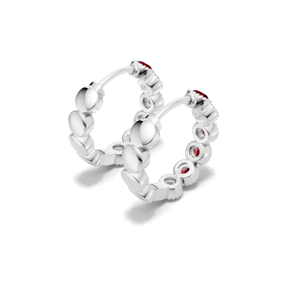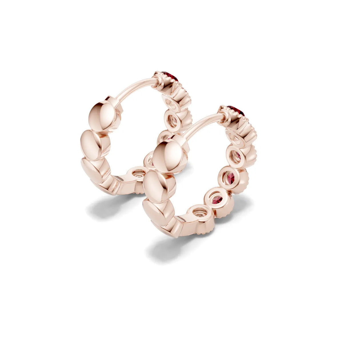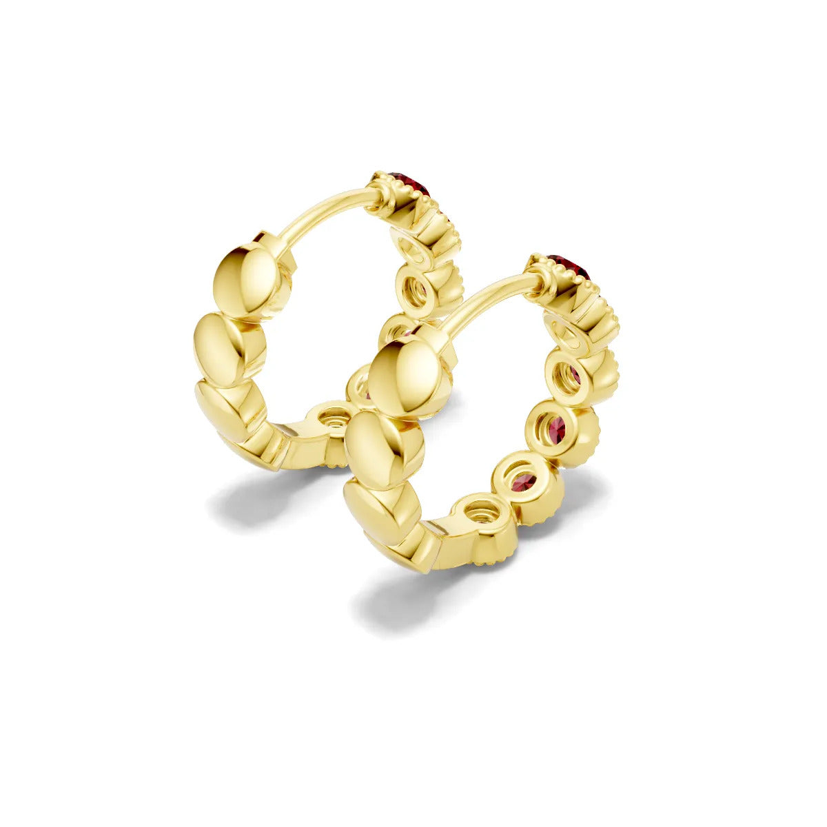 Ruby Round Bezel Huggies Earrings with Milgrain