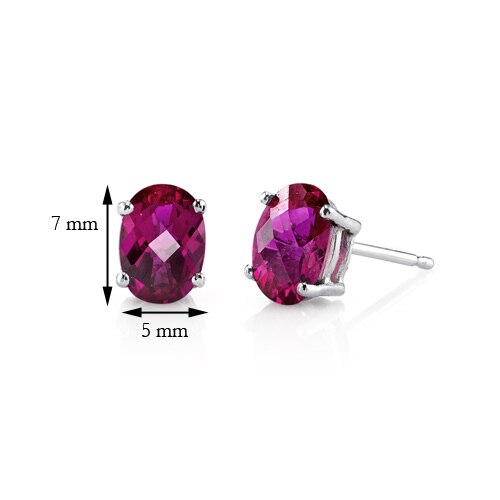 Ruby Stud Earrings 14 Karat White Gold Oval Shape 2 Carats