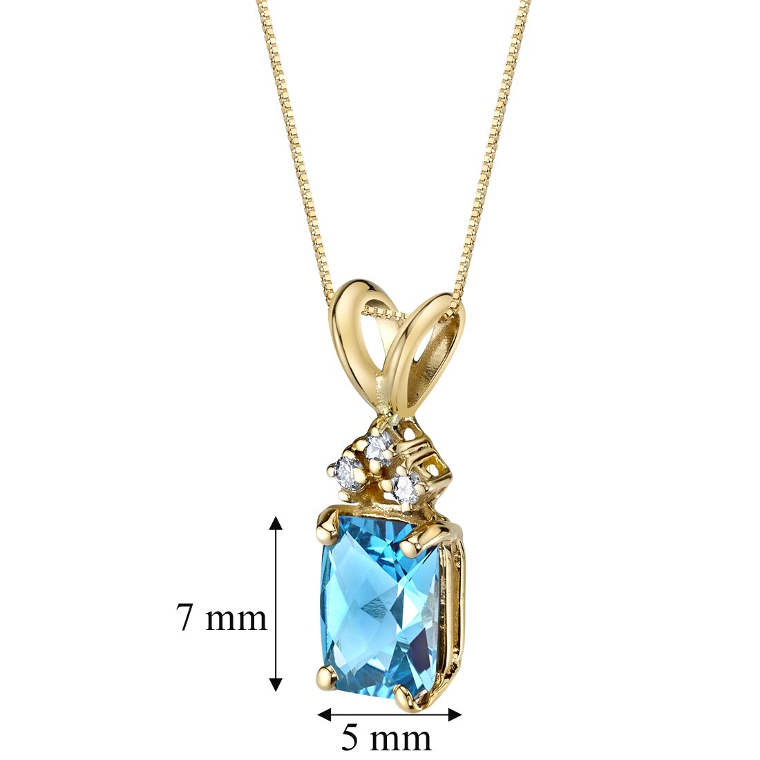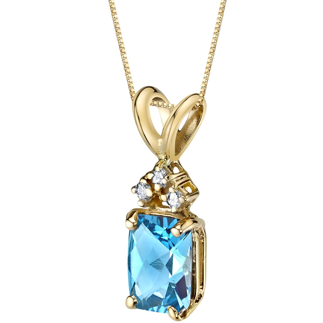 Swiss Blue Topaz and Diamond Pendant Necklace 14K Yellow Gold 1 Carat Radiant Cut