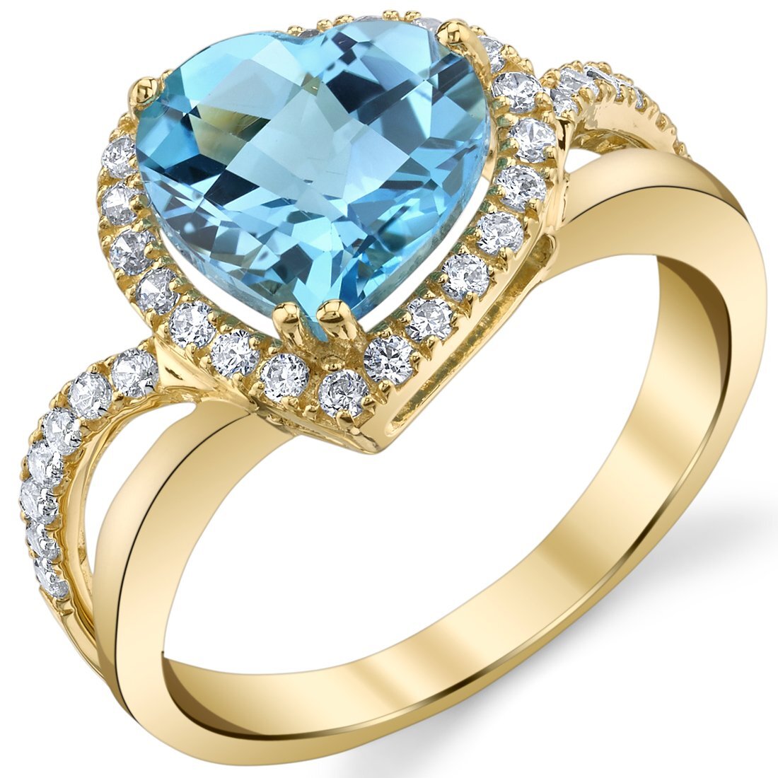 This classic ring features a heart shape Peora natural Swiss Blue Topaz gemstone in 14K yellow gold.