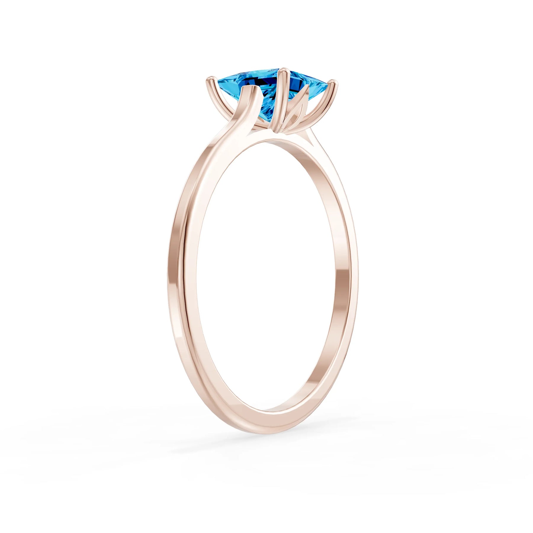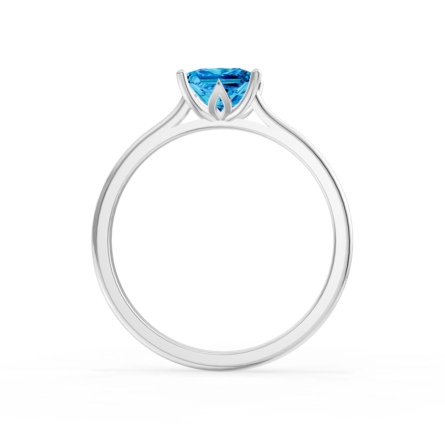 Swiss Blue Topaz 4 Prong Princess Cut Solitaire Cathedral Ring