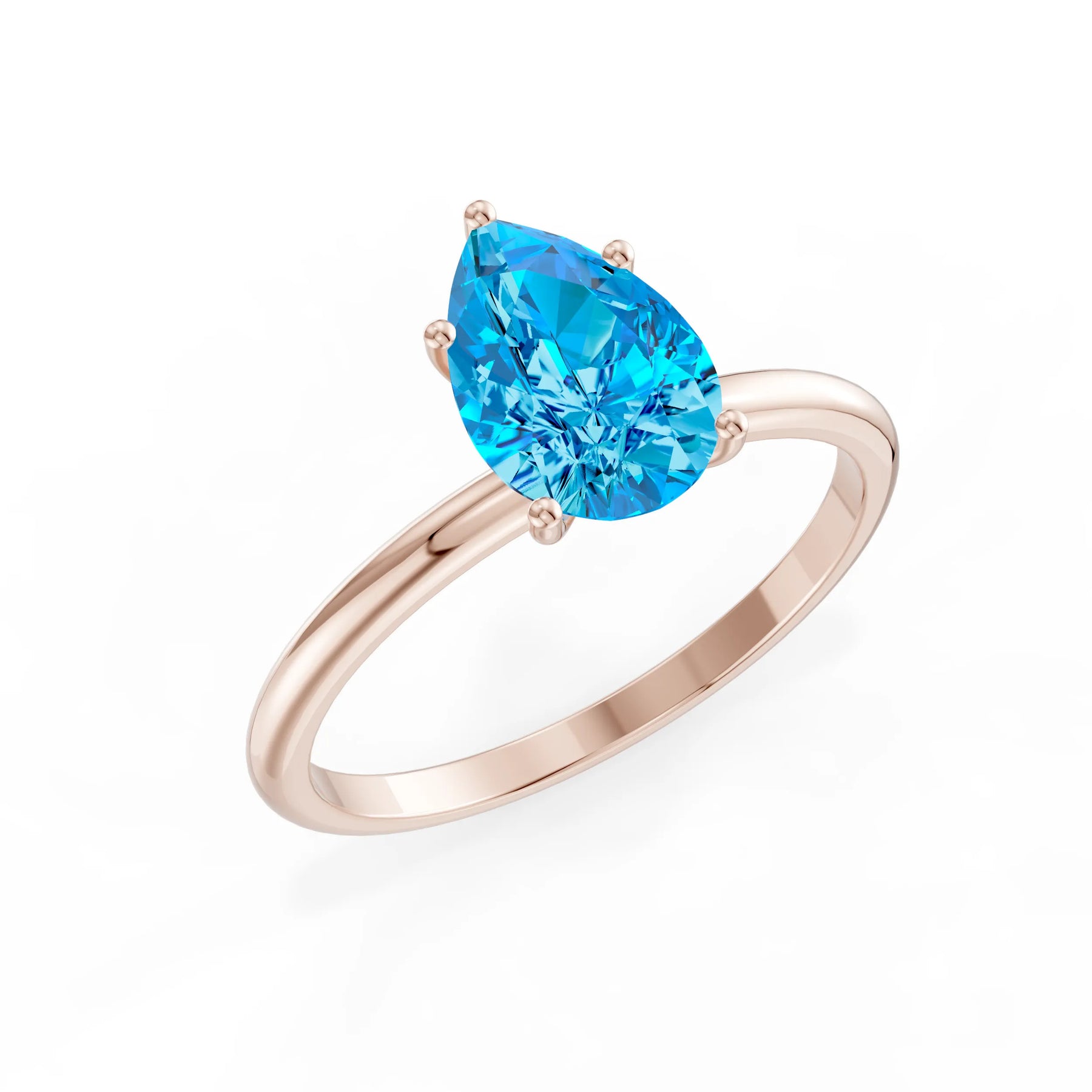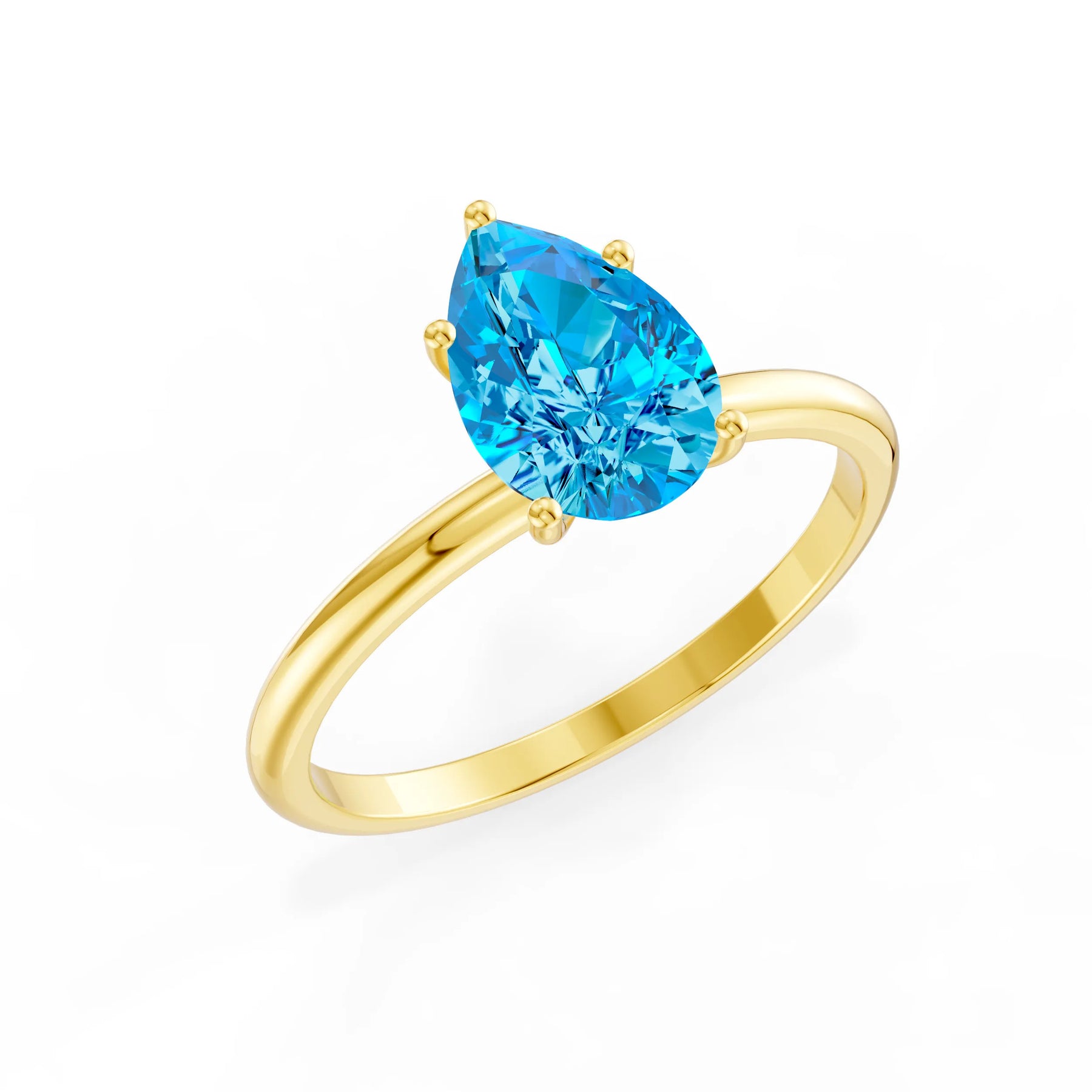 Swiss Blue Topaz 5 Prong Pear Shape Solitaire Engagement Ring