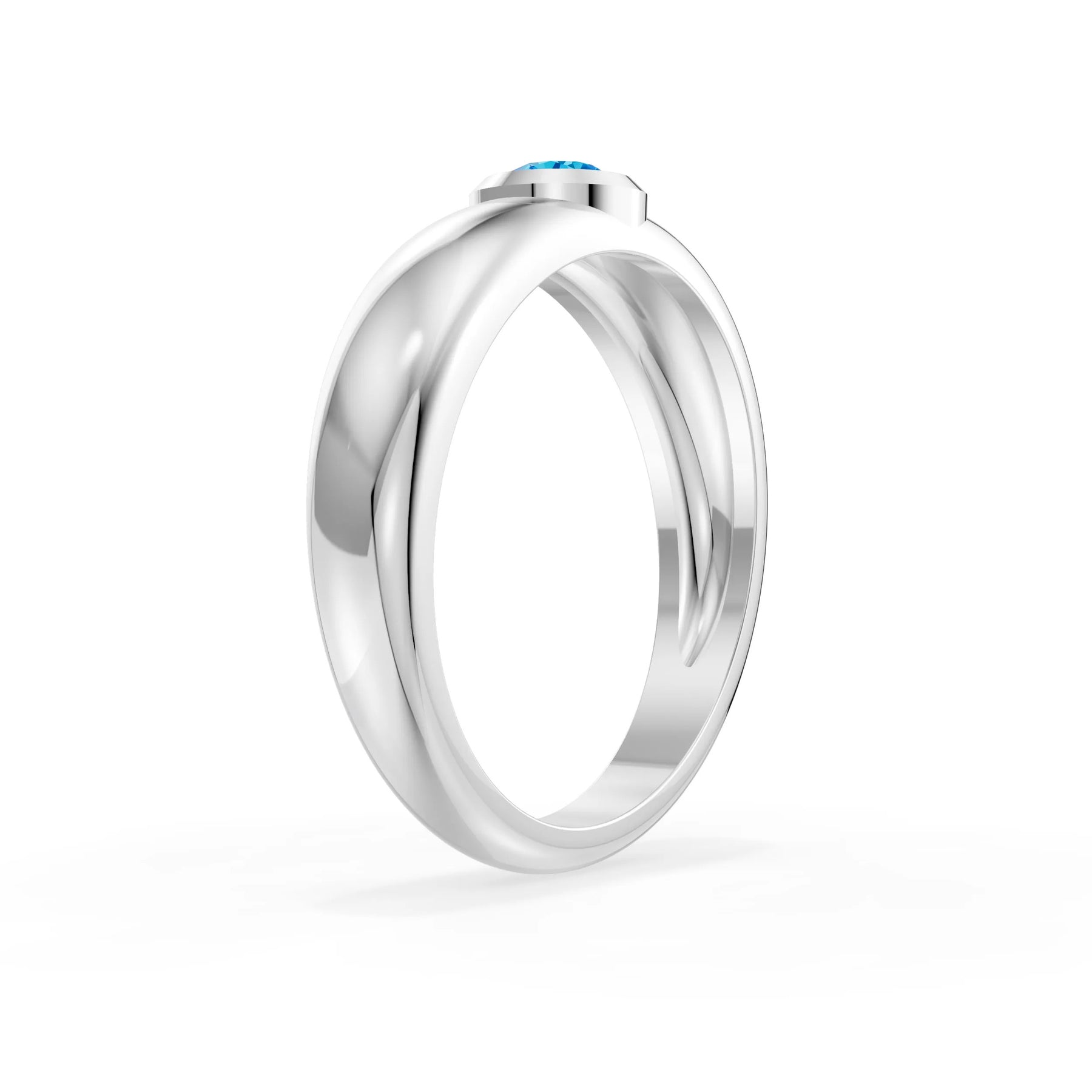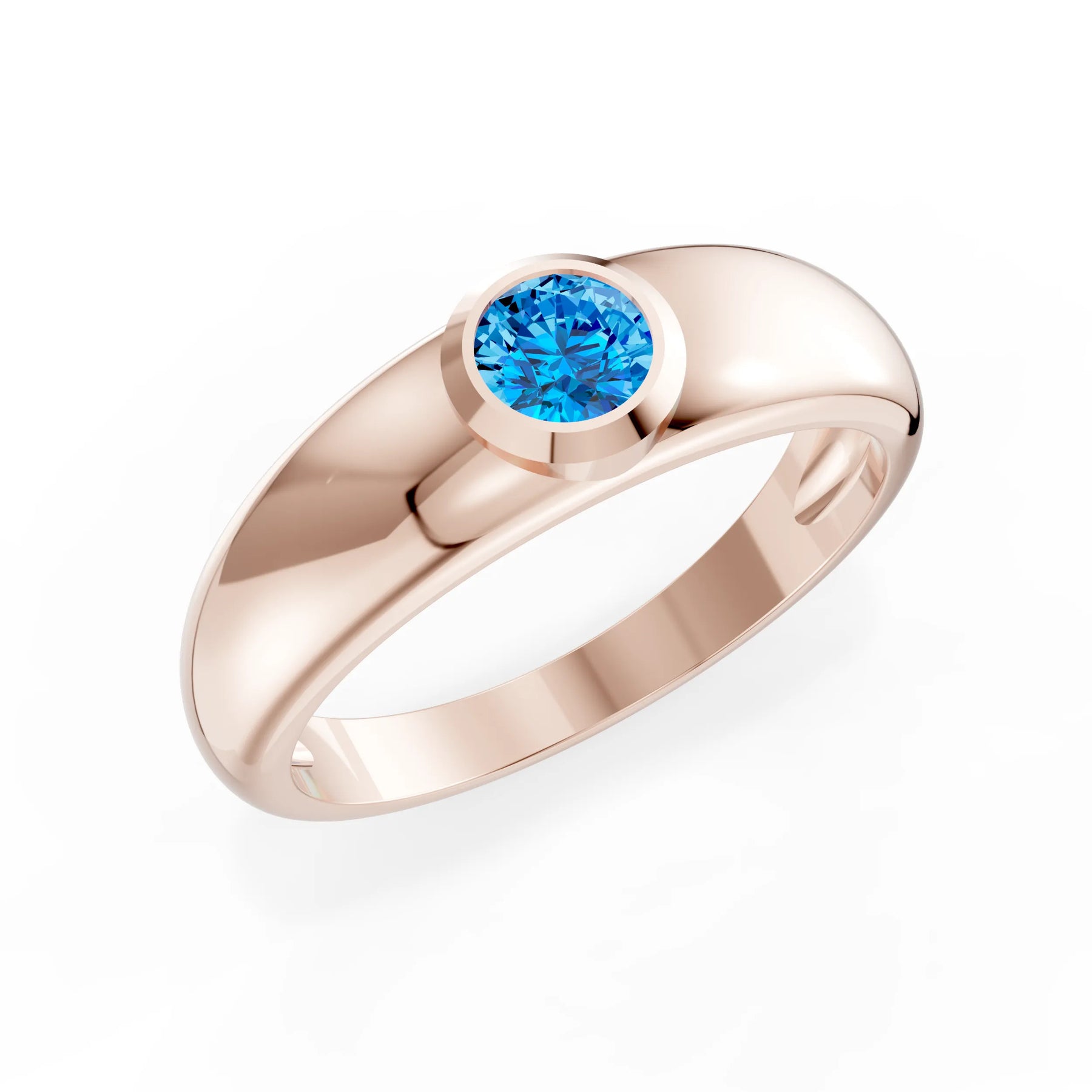Swiss Blue Topaz Bezel Set Round Cut Signet Ring