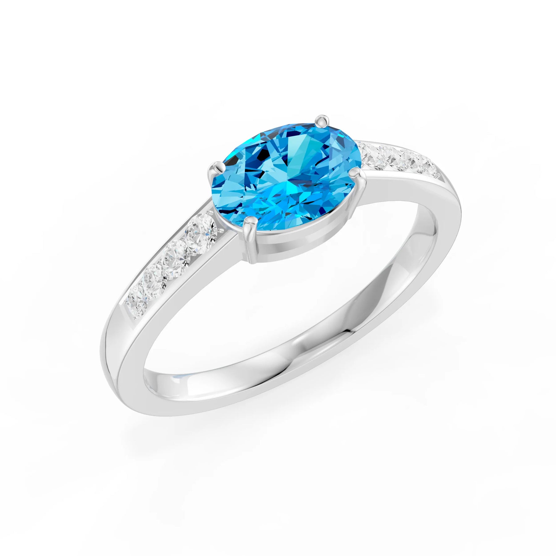 Swiss Blue Topaz East West Oval Gemstone Ring with Accents