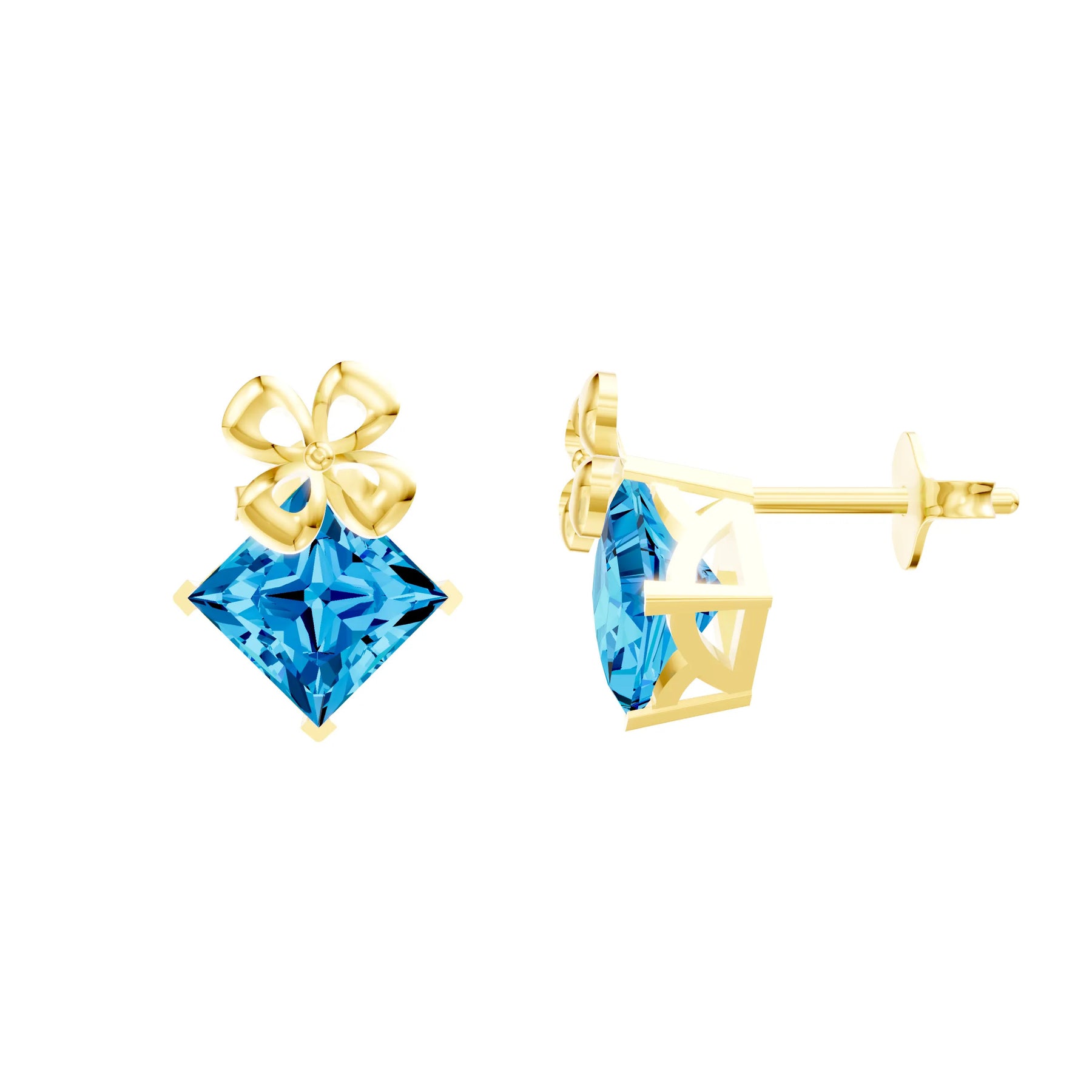 Swiss Blue Topaz Flower Princess Earrings - 5mm