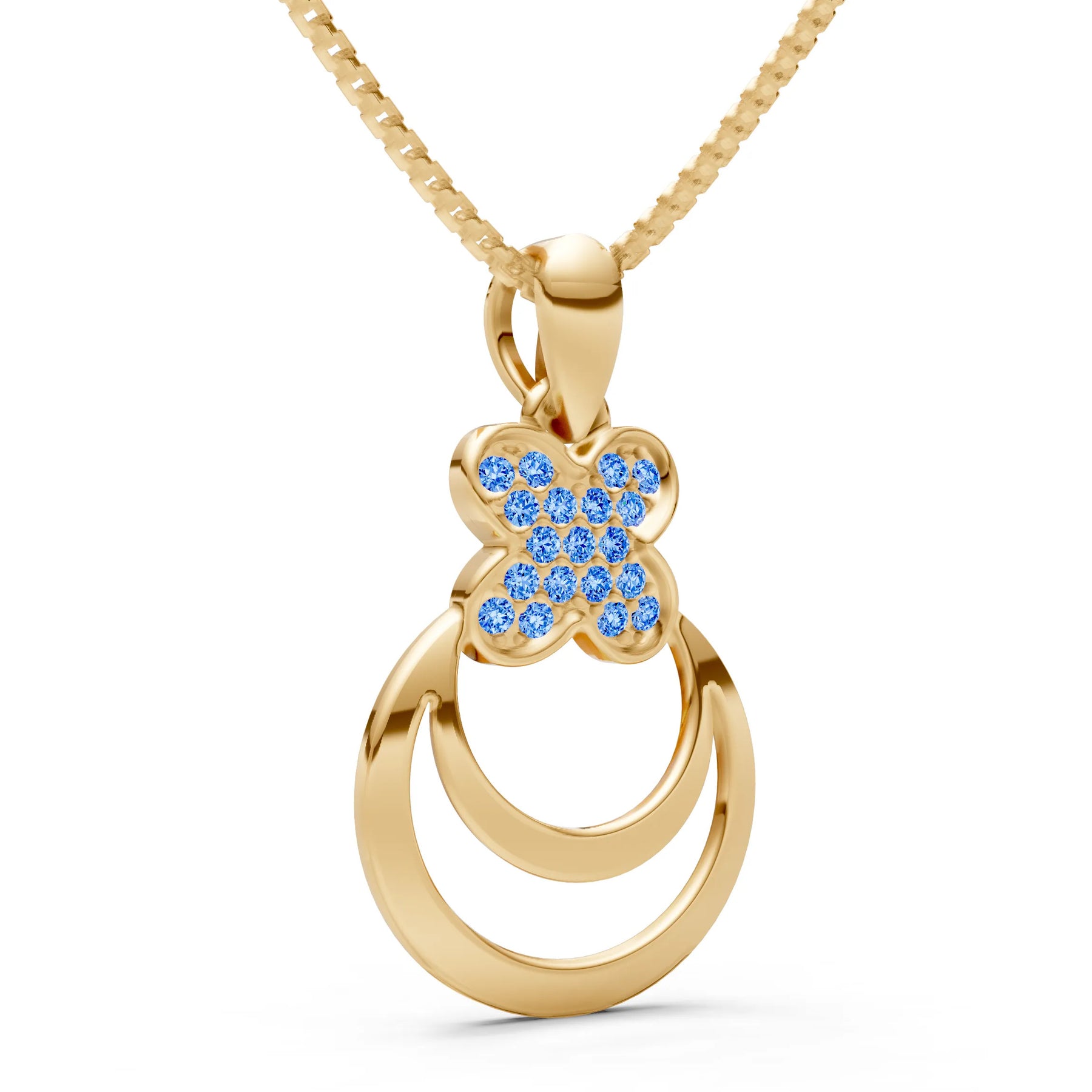 Swiss Blue Topaz Four-Leaf Clover Bloom Pendant