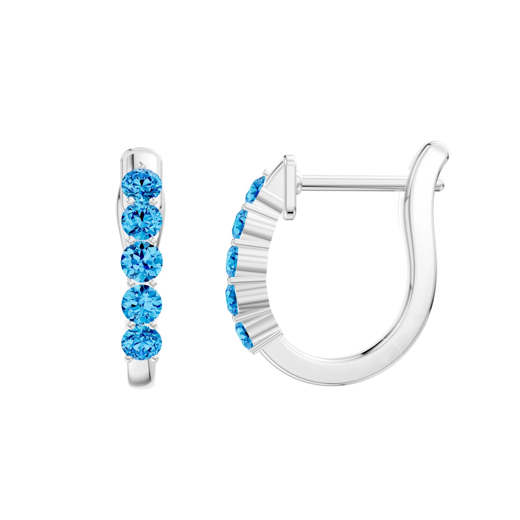 Swiss Blue Topaz Gemstone Huggie Earrings - Alternating & one color