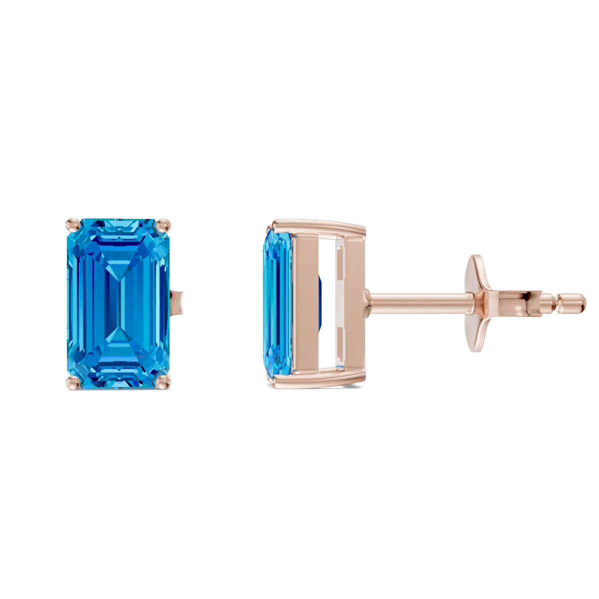 Swiss Blue Topaz Octagon Studs - 5x3mm
