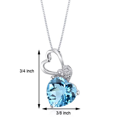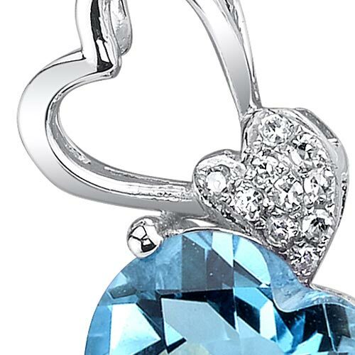 Swiss Blue Topaz Pendant 14 Karat White Gold Heart 3.02 Carats
