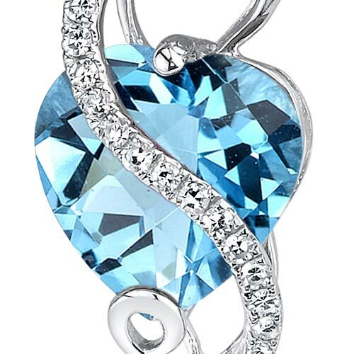 Swiss Blue Topaz and Diamond Pendant Necklace 14K White Gold 3.02 Carats Heart Shape