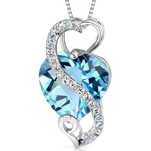This versatile pendant features a heart shape Peora natural Swiss Blue Topaz gemstone in 14K white gold.