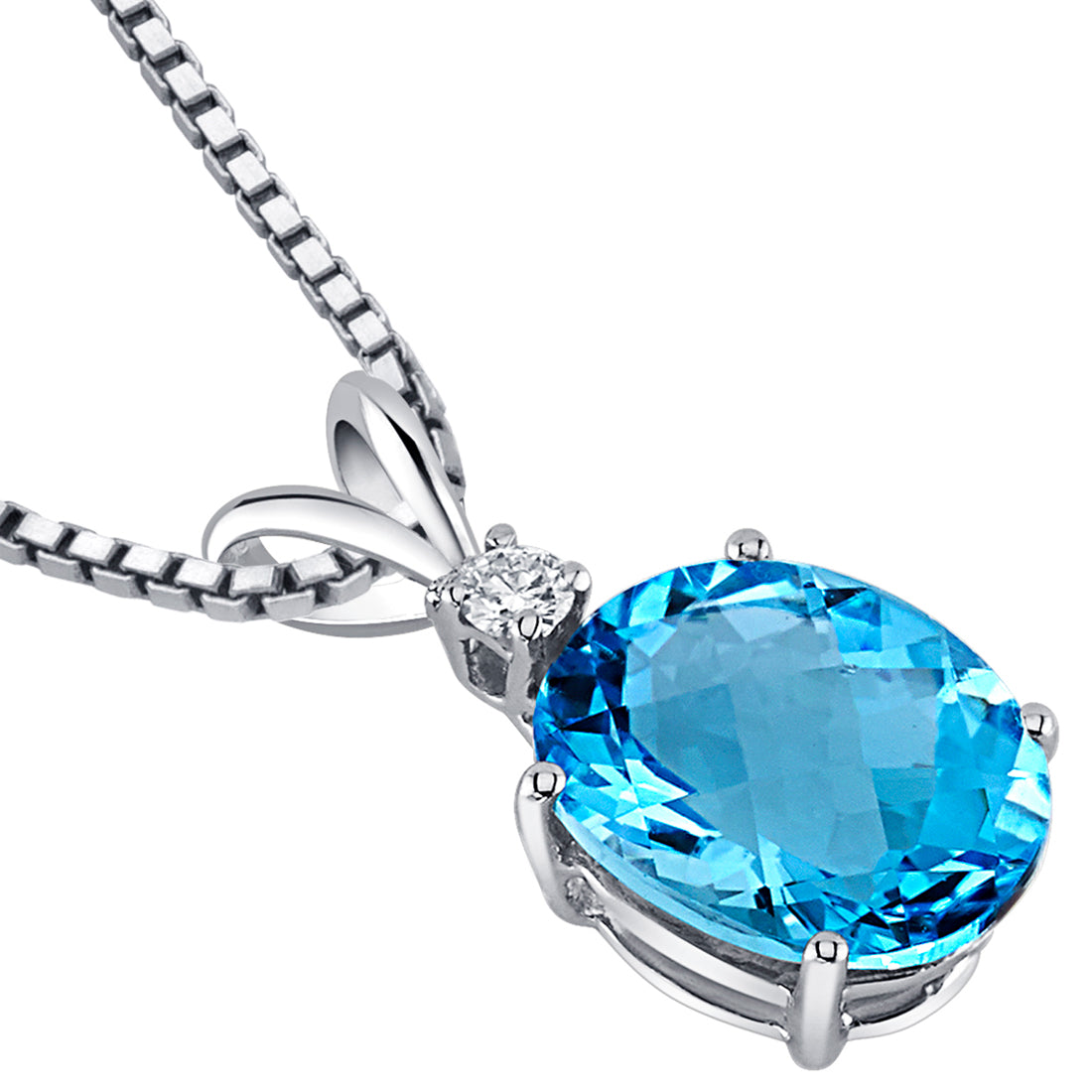 Swiss Blue Topaz Pendant 14 Karat White Gold Oval 2.87 Carats P8928-gift box