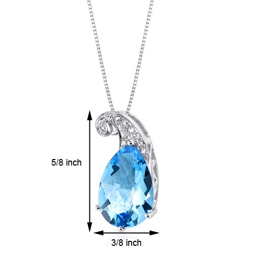 Swiss Blue Topaz and Diamond Pendant Necklace 14K White Gold 2.95 Carats Pear Shape