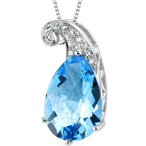 This standout pendant features a pear shape Peora natural Swiss Blue Topaz gemstone in 14K white gold.