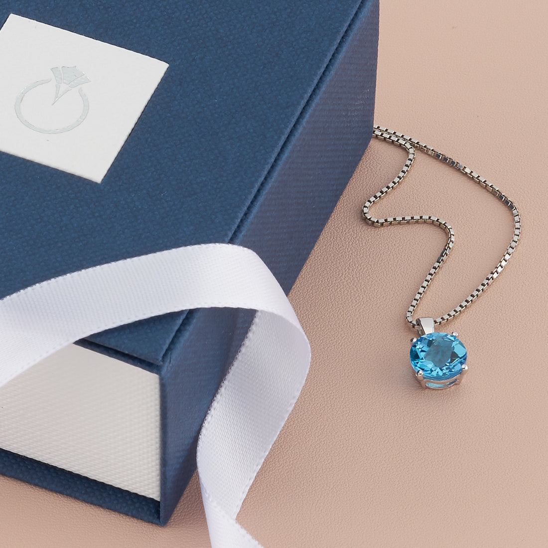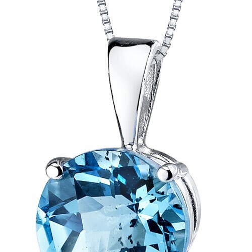 Swiss Blue Topaz Pendant 14 Karat White Gold Round 2.31 Carats