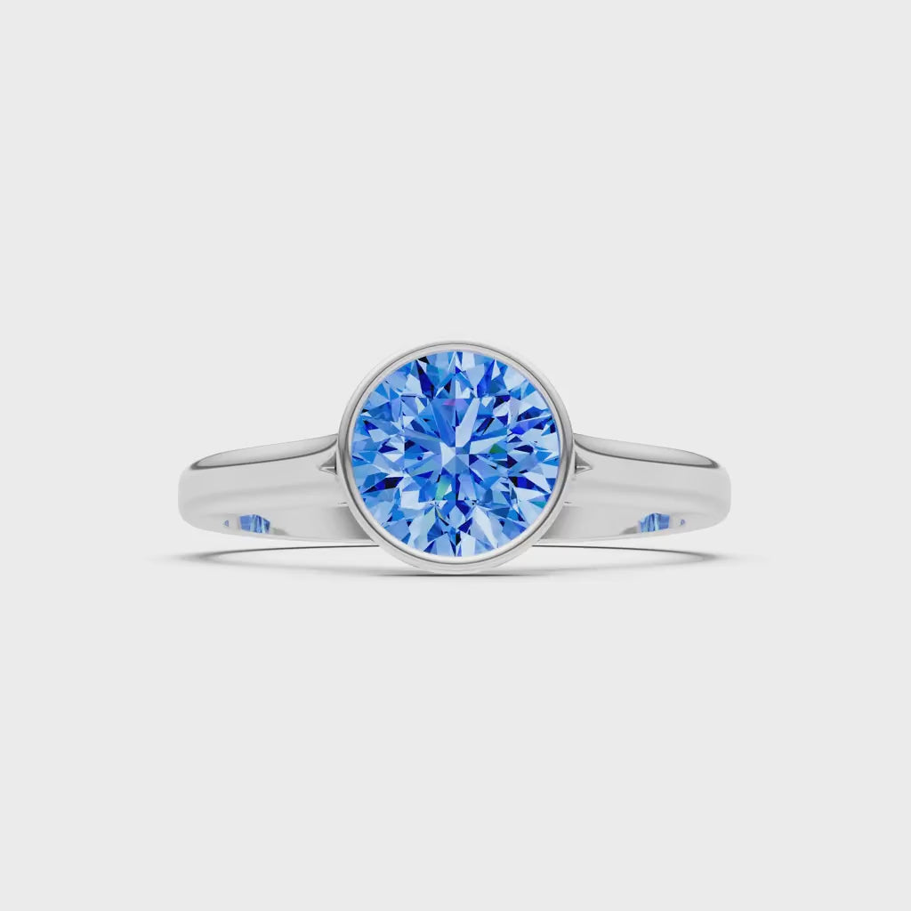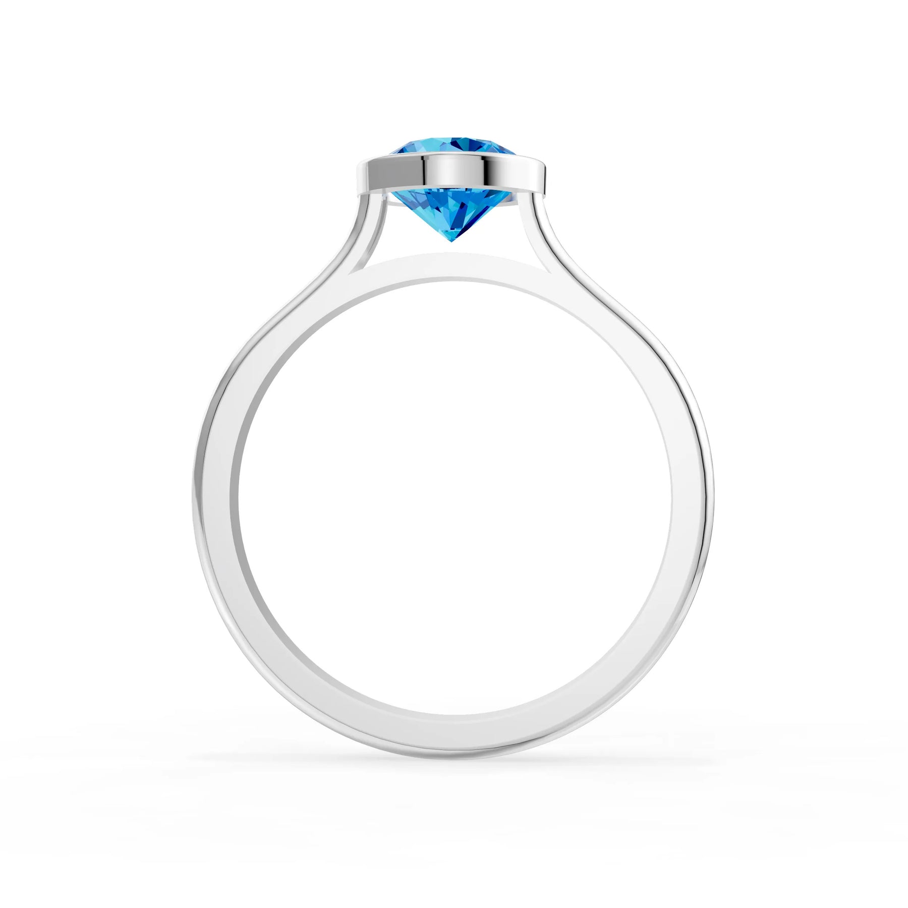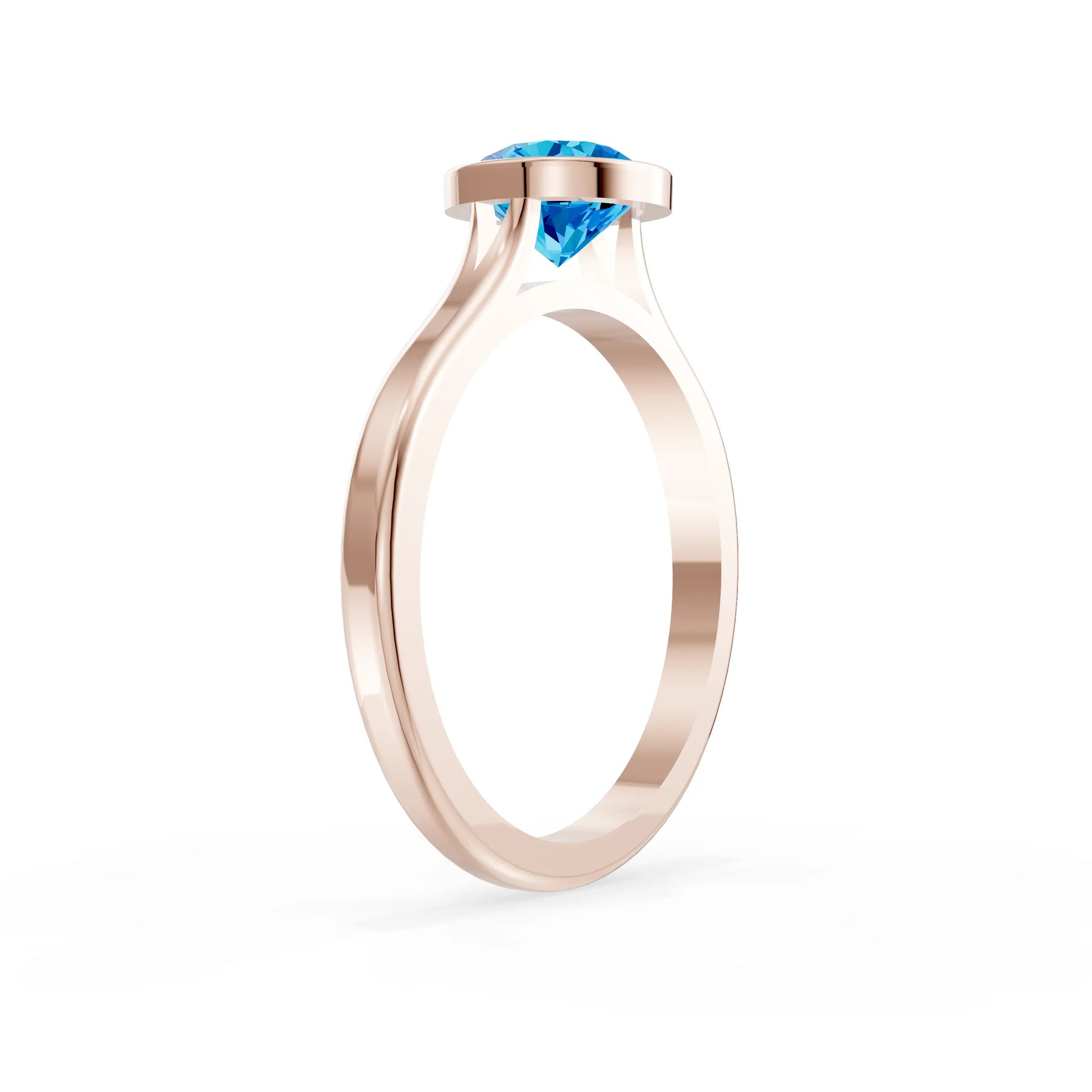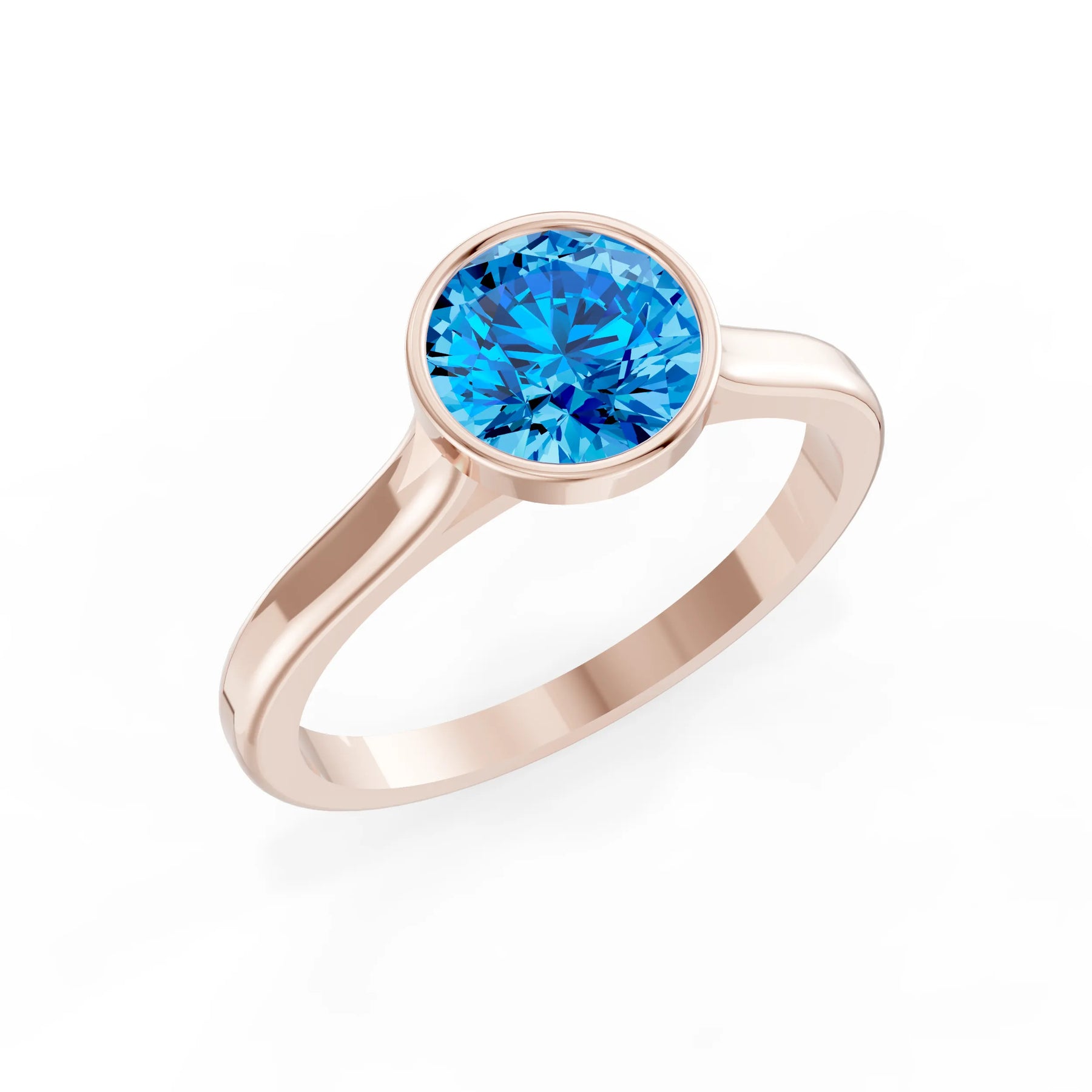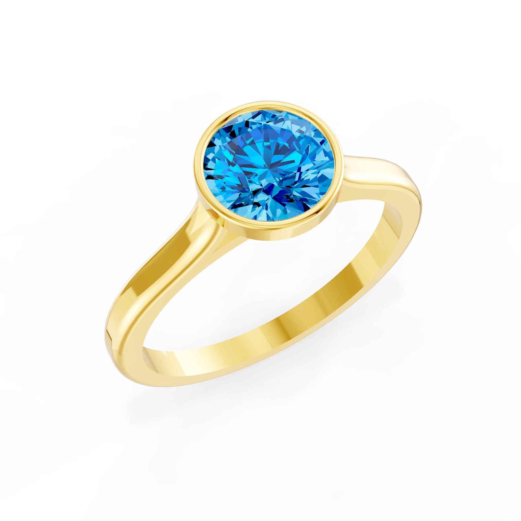 Swiss Blue Topaz Round Bezel Set Solitaire Ring