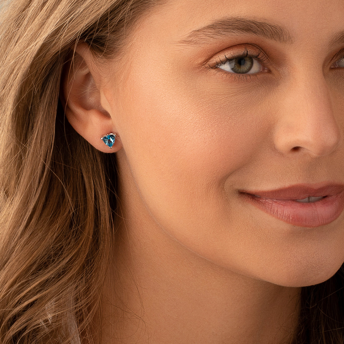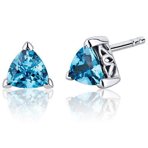 Swiss Blue Topaz Stud Earrings Sterling Silver Trillion Cut