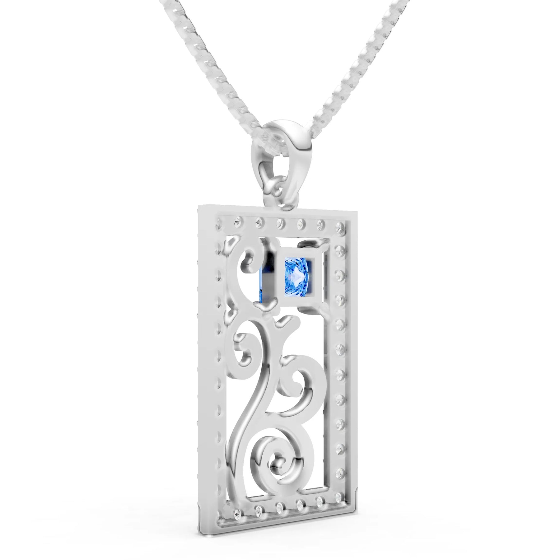 Swiss Blue Topaz Trellis Pattern Inset Luster Pendant