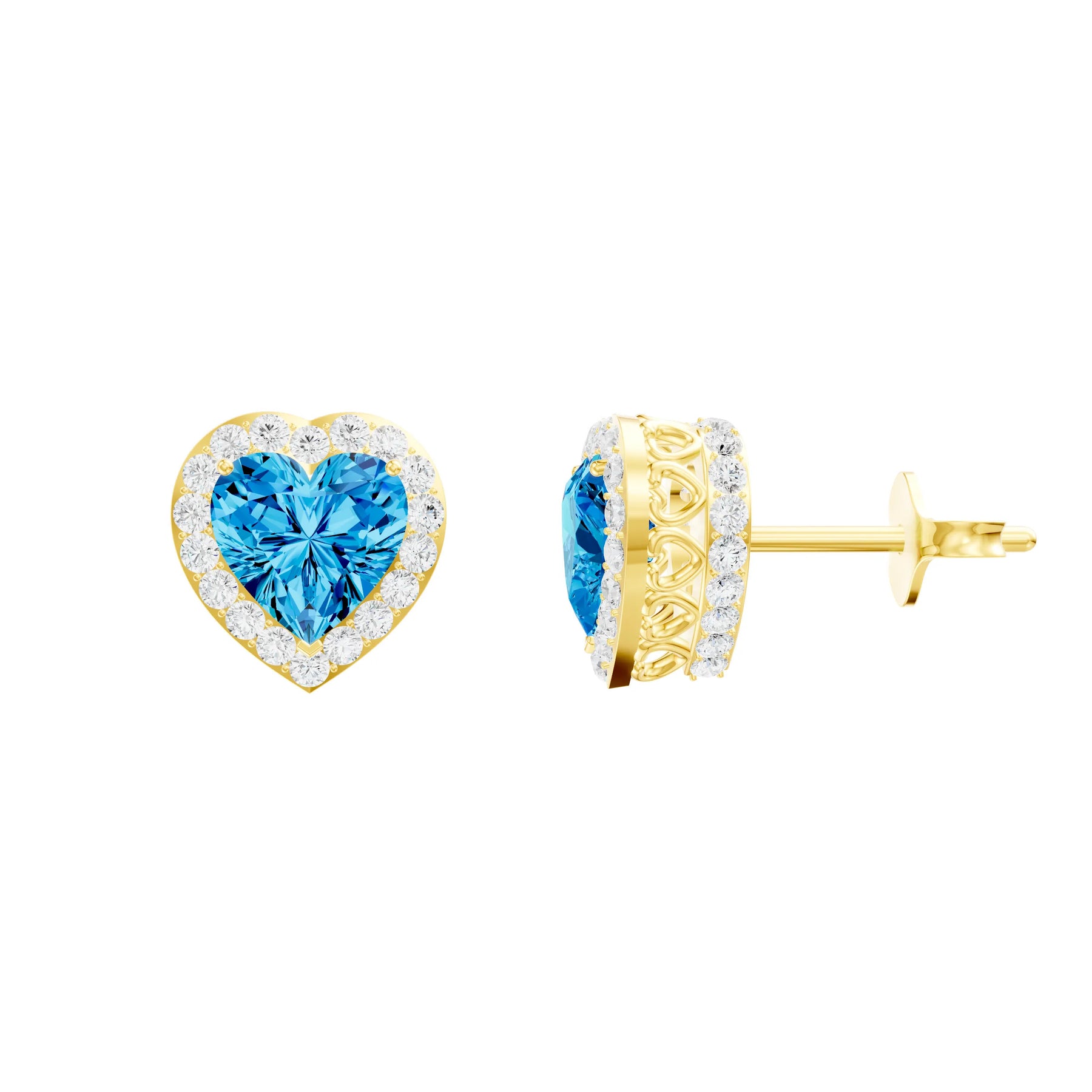 Swiss Blue Topaz Vintage Heart Halo & Hidden Halo Studs Earrings